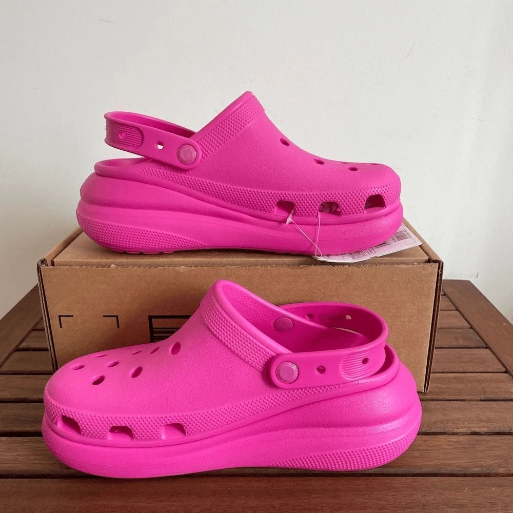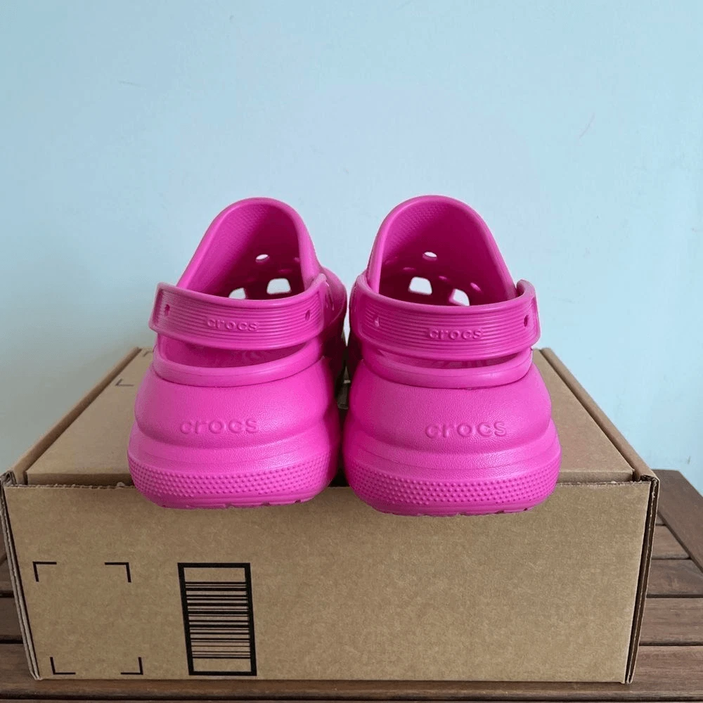 Brand new Crocs Crush Clog Size: Women 9 Men 7 Color: Juice This color is sold out online! ************ Crush Clog Details: Bold styling and added height Unique 2-inch / 5.2cm height, measured from floor to heel rest Customizable with Jibbitz™ charms Iconic Crocs Comfort™: Lightweight. Flexible. 360-degree comfort.