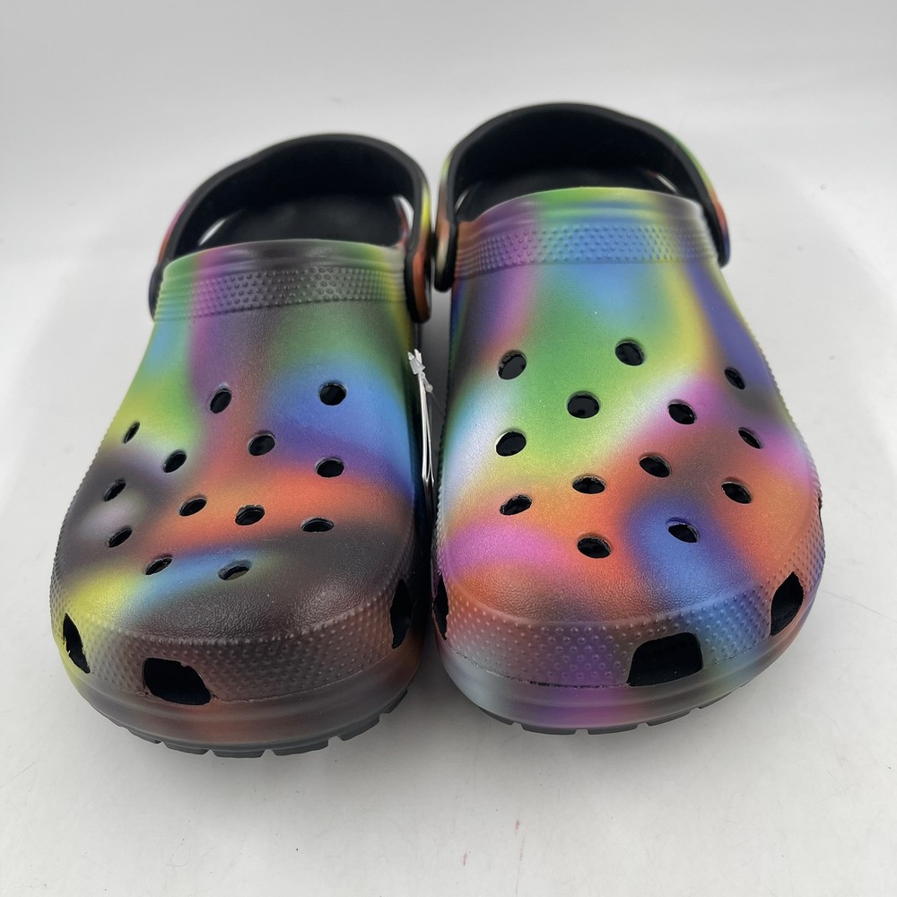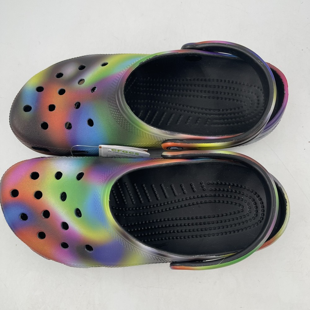 NWT Crocs Unisex Classic Solarized Clog Tie Dye Comfort Shoe Size Men 9 Women 11. BRAND NEW WITH TAGS Men’s Size 9 Women’s Size 11 Crocs women’s Classic Solarized tie dye clogs shoes. Please see photos for details of shoes •Lightweight Croslite foam construction •Easy slip on design with pivoting heel strap •Classic round toe with roomy fit •Molded footbed with Iconic Crocs Comfort •Durable and non-marking outsole •Customize with Jibbitz charms for a personalized look •Crocs logo Brand new. No original box Carefully packaged and box shipped same/next business day Please feel free to ask questions All items come from a smoke-free/pet friendly environment Please make sure to follow me. I list new inventory daily SH2900/3042PE-Q02