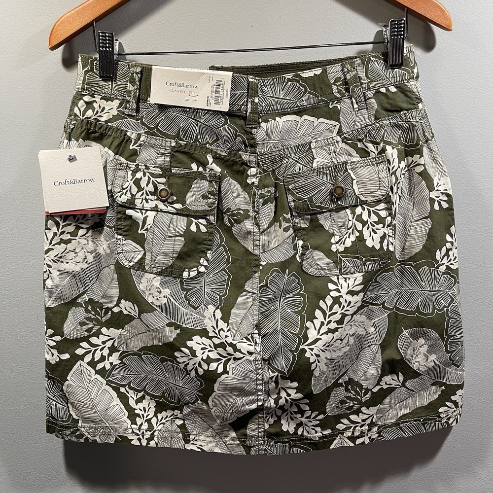Pattern: Floral Department: Women Brand: Croft & Barrow Type: Skort Theme: Classic Fit Closure: Zip Country of Origin: Egypt UPC: Does not apply Color: Green Character: None Size Type: Regular Style: Skort Size: 6 Occasion: Casual Fabric Type: Canvas Rise: Mid Season: Fall, Spring, Summer Garment Care: Machine Washable Accents: Pockets Personalize: No Handmade: No Features: Pockets, Stretch Vintage: No Skirt Length: Short Material: Cotton Blend gtin13: Does not apply