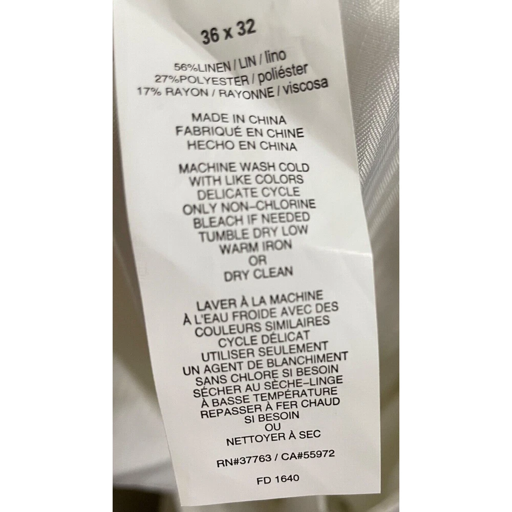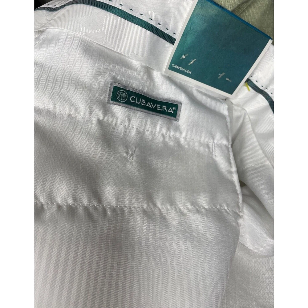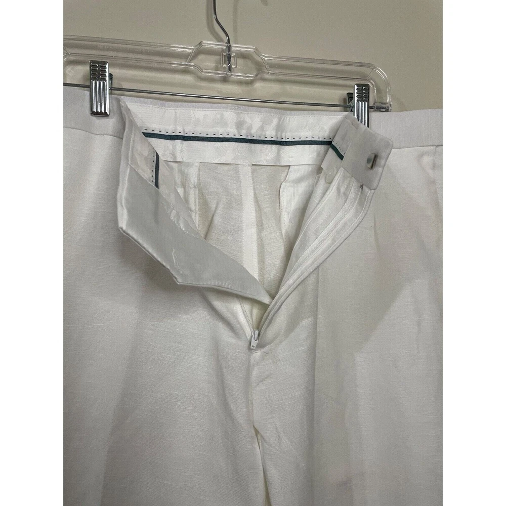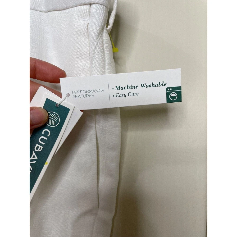 Elevate your style with these brand new white dress pants by Cubavera. These classic fit pants are made of a lightweight and breathable linen blend material, perfect for summer and spring occasions such as weddings, parties, and even workwear. Featuring a flat front design and straight leg style, these pants have slash pockets for added convenience. With easy care instructions and a machine washable garment care label. The zip and hook & loop closure ensures a secure fit, making them a great addition to any wardrobe. Available in size 36 waist and 32 inseam, these pants will surely become a staple piece in your closet.