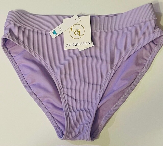 This Cyn & Luca lavender Purple BIKINI top bottom mix n match comes in M L XL. These bikini pieces are a soft pastel color and stylish set perfect for teens. The sports bra like swim top has a vertical ribbed pattern with a solid color scheme. Made from polyester, the bikini top features, removable pads, built-in bra, clasp in back and wide shoulder straps for a comfortable fit. The medium coverage swim bottom in the same brand complements the top for a fashionable beach look in the same ribbed pastel colored theme. Pieces are sold separate .. so choose a top and bottom to your size liking to buy a full swimsuit set. Brand: Cyn&Luca New with Tags Retails new $45 These items come from a smoke free and pet free environment. Please check out my many other listings to include adult and children’s clothes, shoes, toys, Disney and Universal items, holiday items and more.