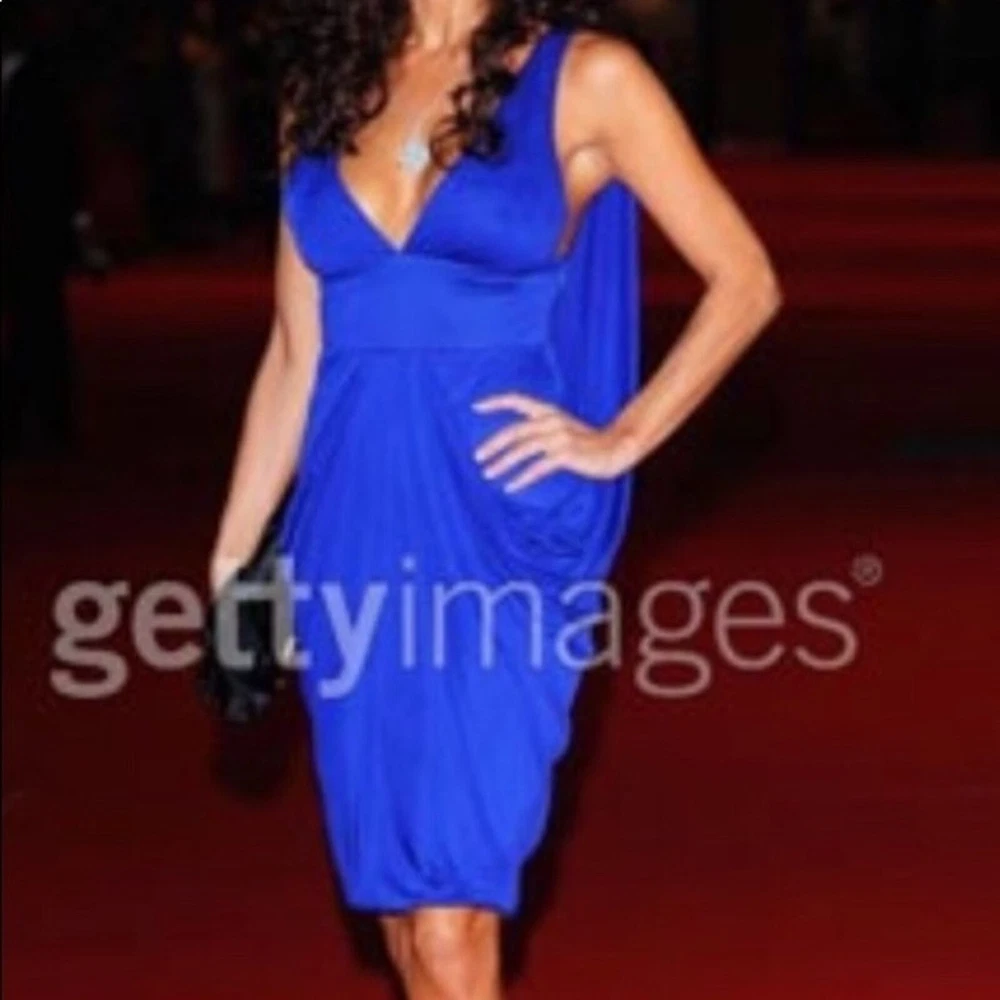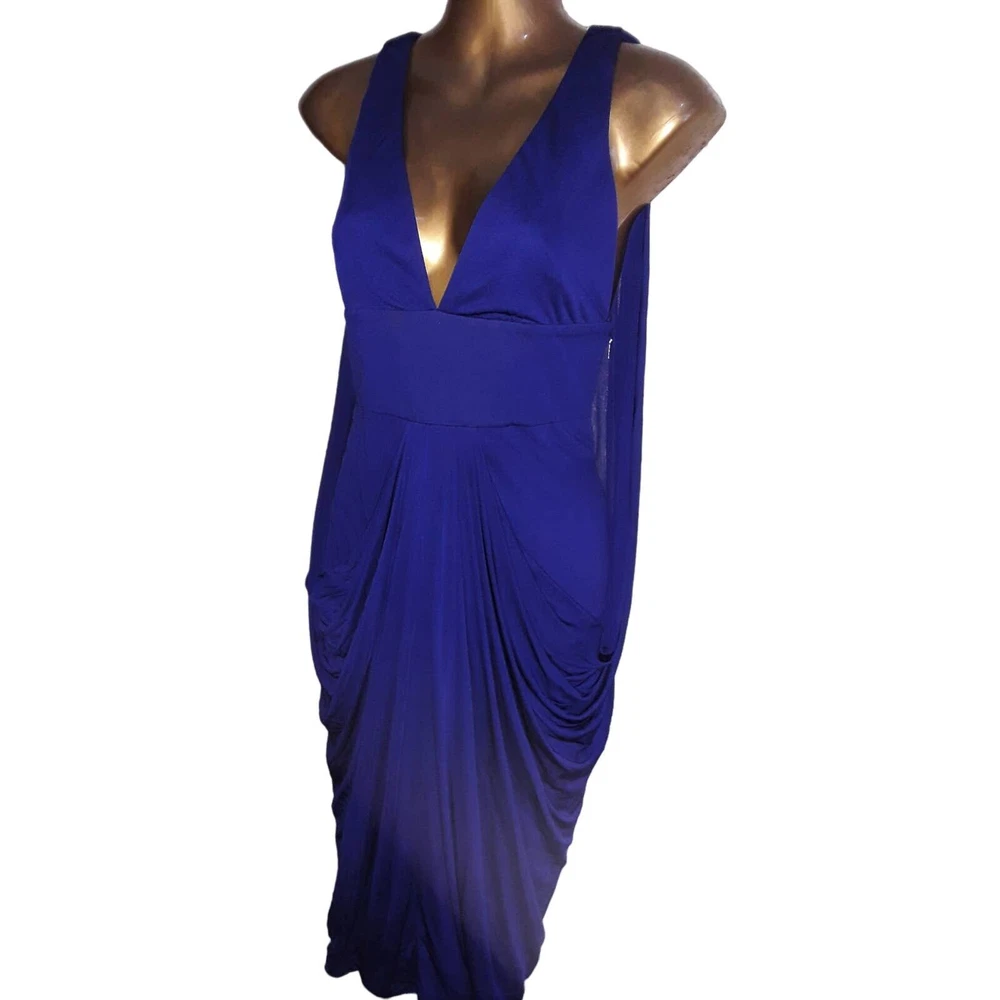 Gorgeous, Sexy, Early 2000s NWT Versace Royal Blue Draped Panel Back Grecian Style Cocktail Dress. Vibrant Royal Blue Color That Can Be Worn Any Time of The Year. Flattering Drapes and Gathers Throughout Hidden Zipper at Side with Hook-and-Eye Closure MSRP: $2,175 Size 42 (Italian) – Approx 8/10 US. Please Refer to Measurements Prior to Purchase Approximate Measurements Laid Flat Across Front: Chest - Pit to Pit: 18.5” Waist: 15.5” Hips: 19.5” Length: 38” from Top Back Shoulder Seam to Hemline Material: Rayon Jersey Blend (Super Soft and Luxurious Stretchy Blend of Fabric) NOTE: Measurements May Vary as This Dress is Made of Stretchy Material. Measurements were Taken When Item Was Laid Flat, Not Stretched. FAST SHIPPING!!