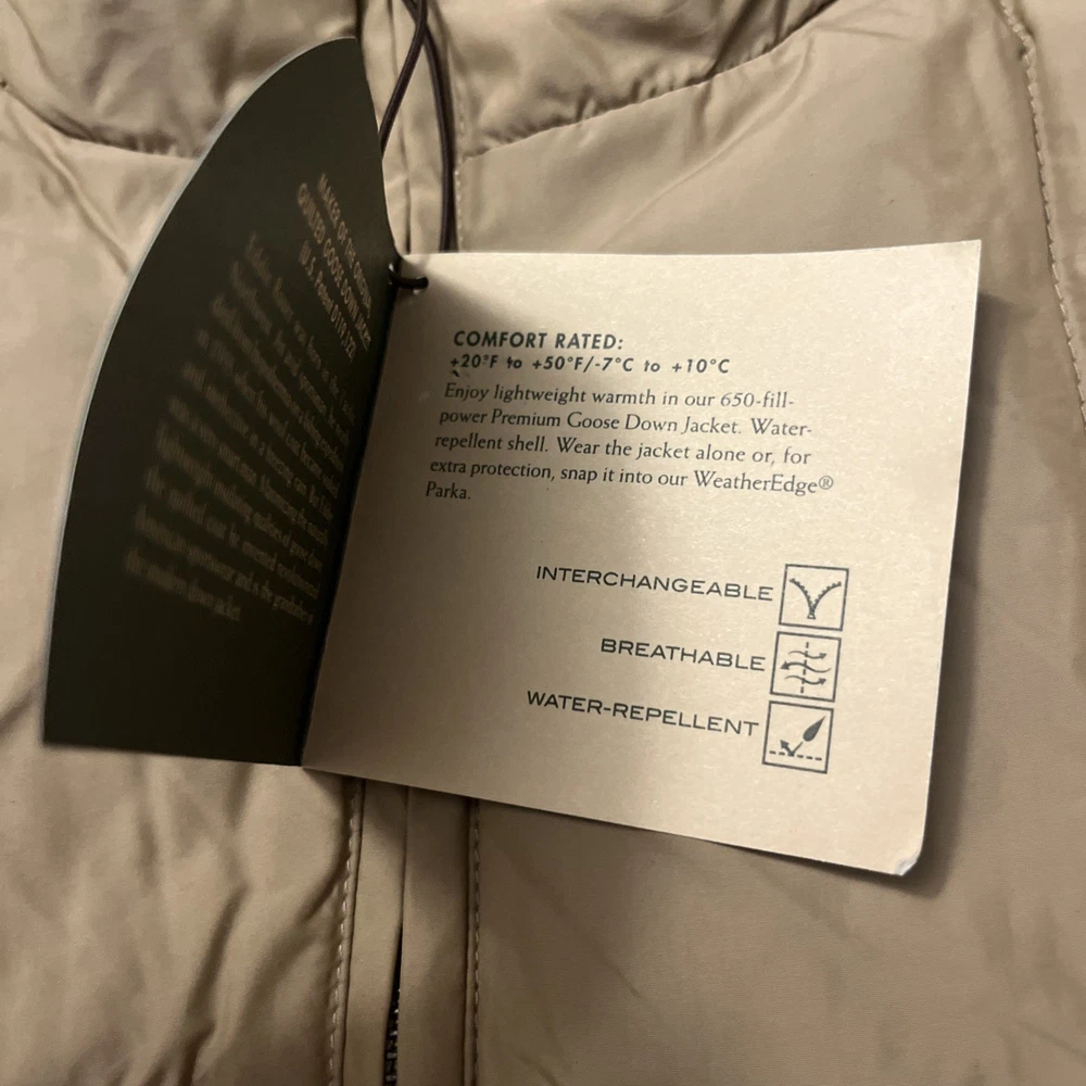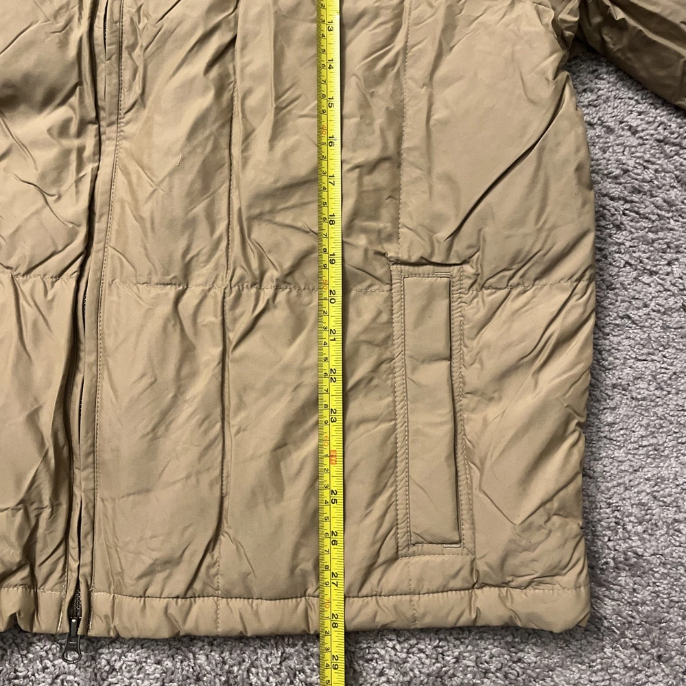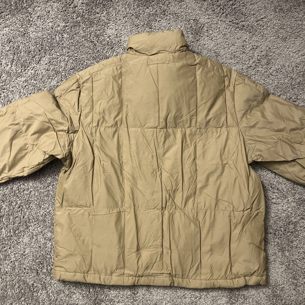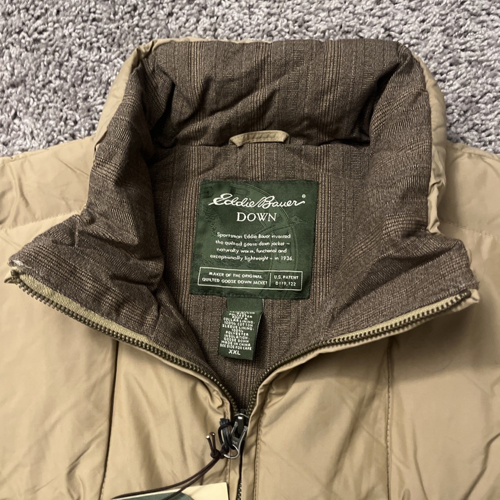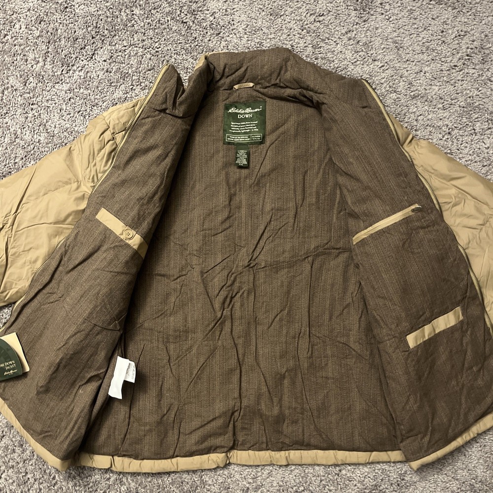 Excellent condition jacket new with tags! Comes from a smoke free home and will be packed with care. Eddie Bauer Goose Down Quilted Puffer Jacket in Adult size Large is a stylish and practical outerwear option for men. Made with a polyester outer shell and lined with soft polyester, this jacket features a solid beige color with quilted accents, giving it a retro and outdoor-inspired look. It is a short-length jacket with a full zip closure and pockets for added convenience. Perfect for casual occasions in the winter, fall, and spring seasons, this jacket is designed for regular fit and features insulated protection for added warmth. With the Eddie Bauer brand known for quality and durability, this jacket is a reliable choice for outdoor activities.