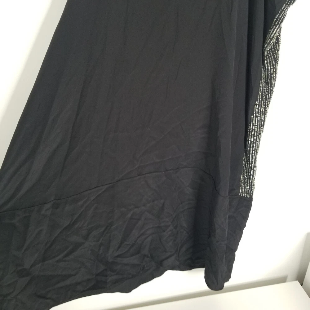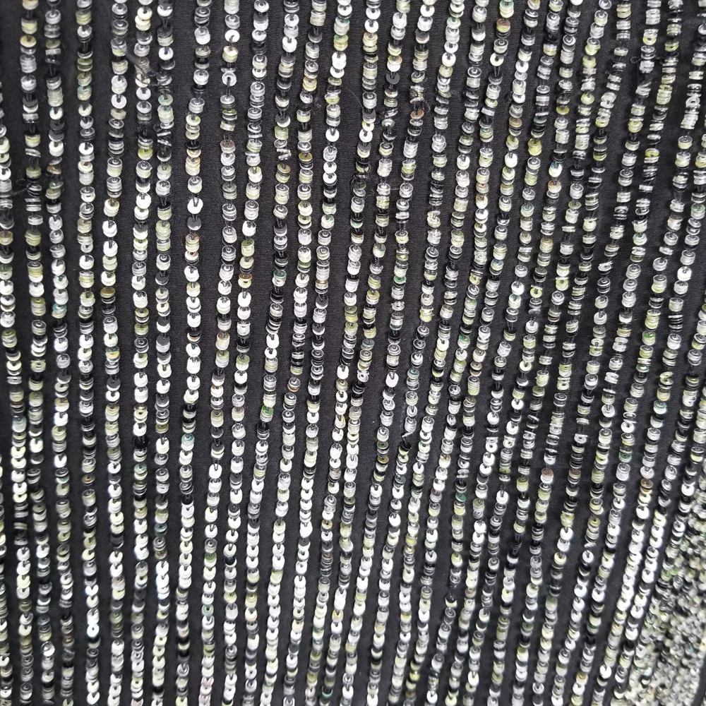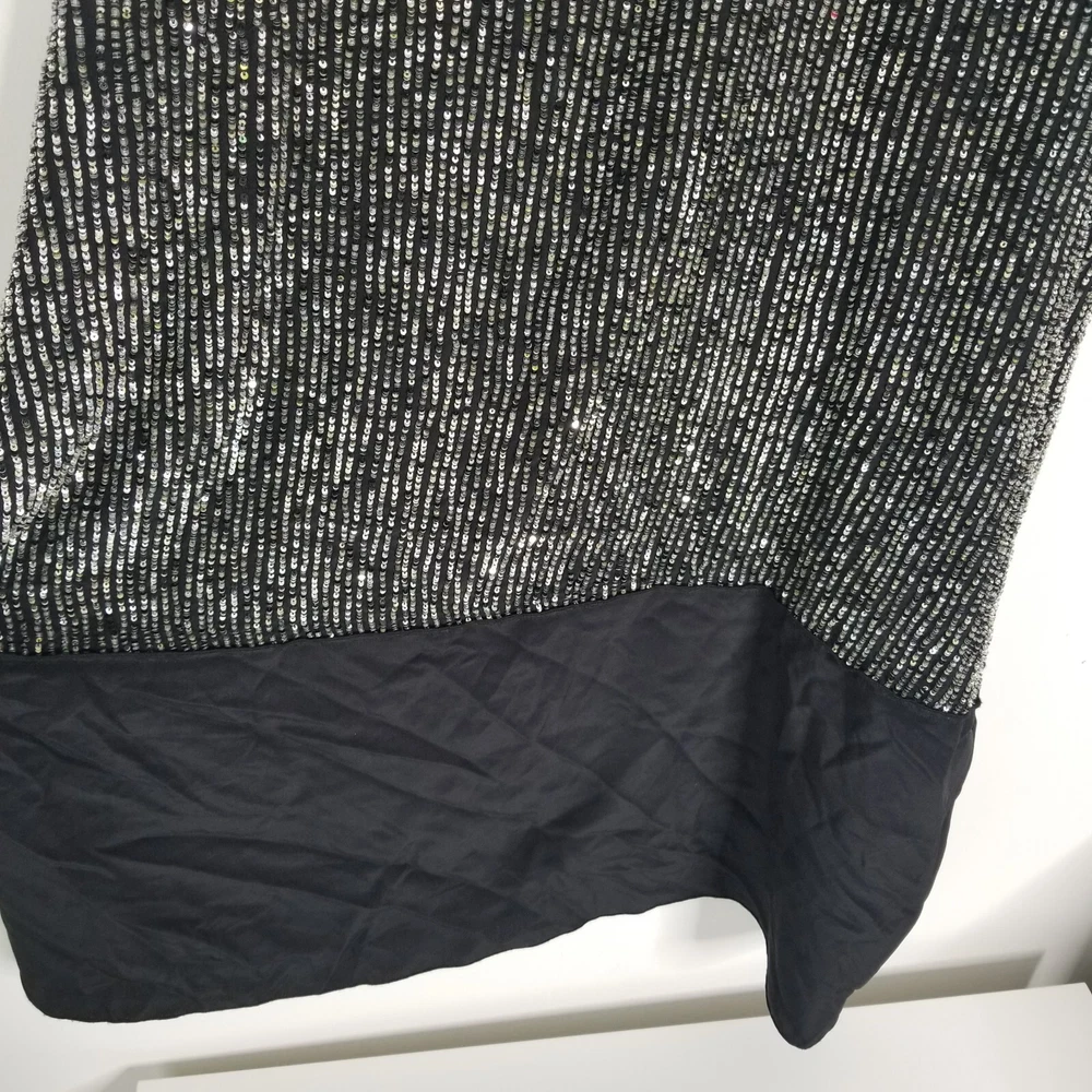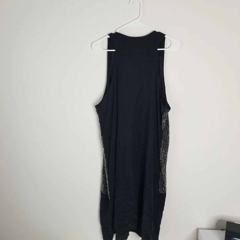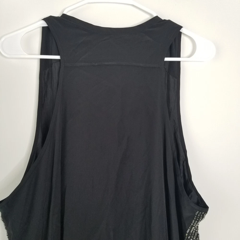 New with tags Eileen Fisher Sequined 100% Silk Crepe de Chine Tank Dress in a size XL. Color is black. No flaws observed, brand new. Scoop neckline Sleeveless Pullover style Racerback Sequin front Back seam detailing Lined 100% Silk, 100% silk lining Dry clean Measurements taken with item laid flat: Length: 40" Pit to Pit: 22" Waist: 25"