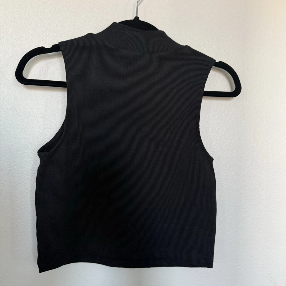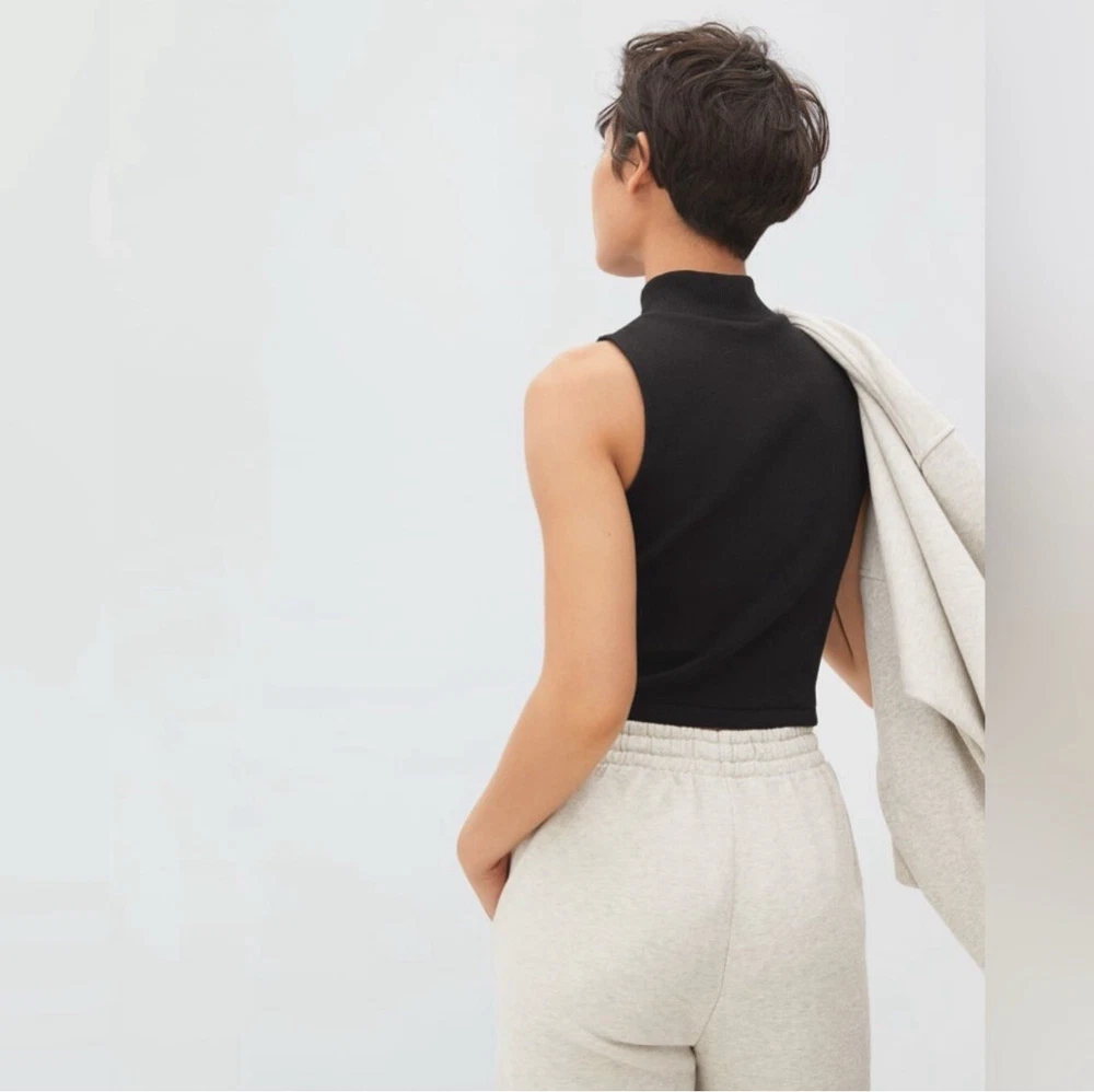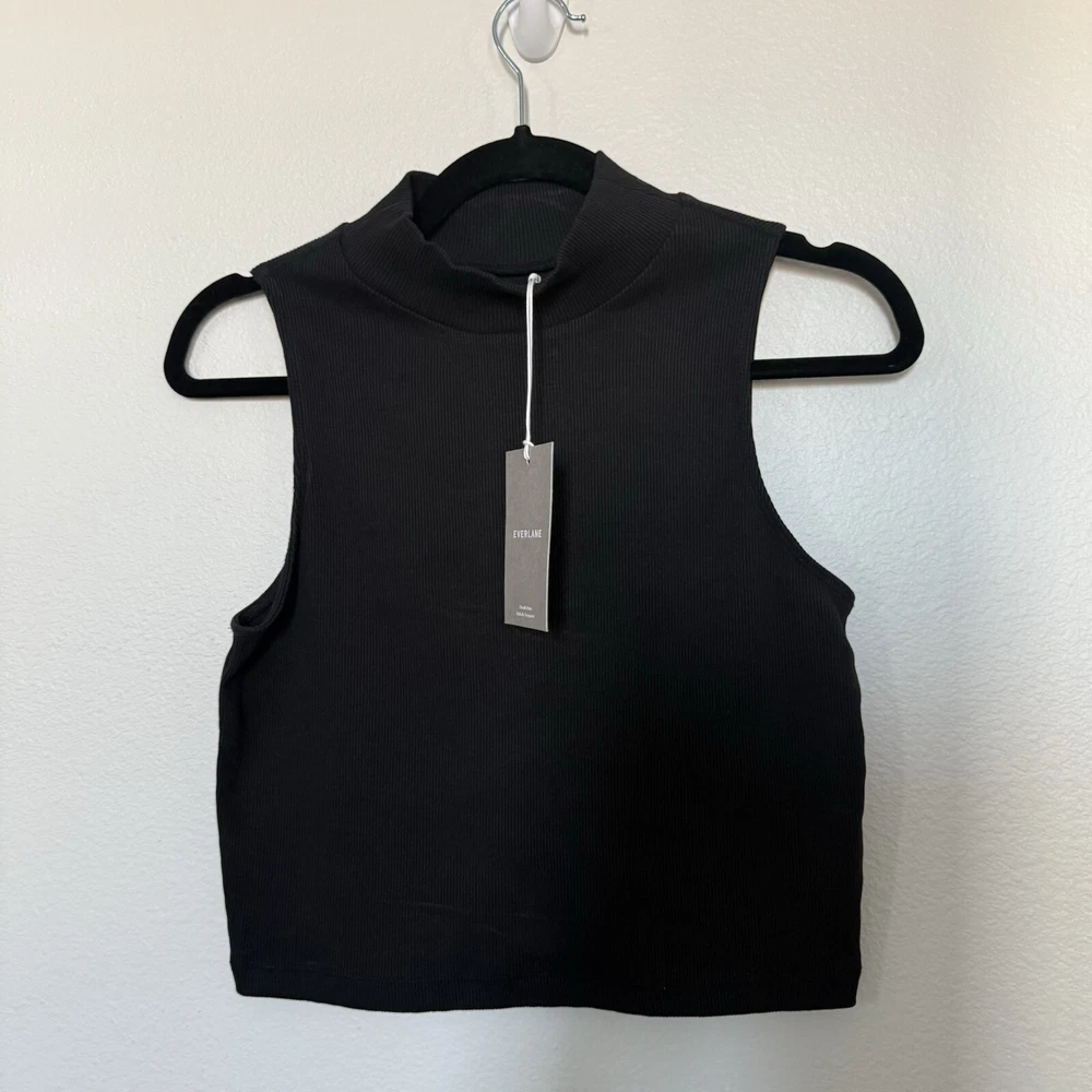 Size: S Sleeve Length: Sleeveless Material: Cotton Season: Spring, Fall, Summer, Winter Fit: Slim Color: Black Department: Women Closure: Pullover Size Type: Regular Style: Cropped Type: Tank Brand: Everlane Occasion: Casual, Travel, Party/Cocktail Neckline: Turtleneck Theme: 90s, Classic, City, Y2K, Minimalist, Contemporary