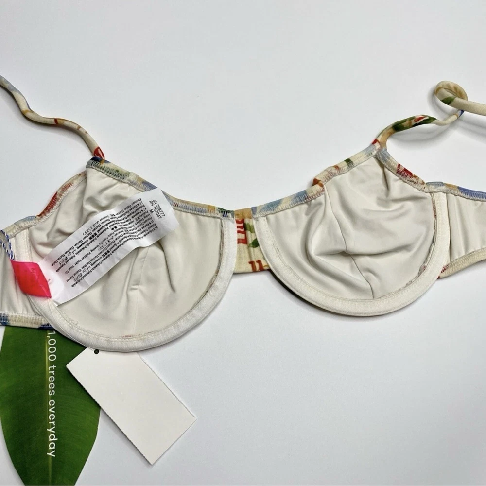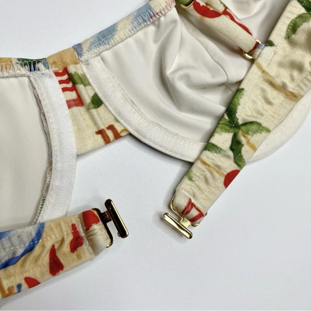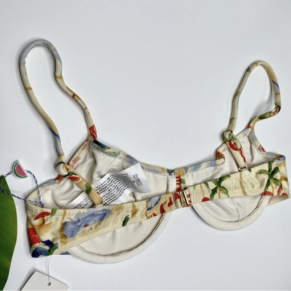 Embrace the vacay vibes in this flirty bikini top with supportive underwire. Allover print. Adjustable straps. Underwire. Back hook closure. Gold-tone hardware. Lined. *This listing is for the top only!* Color: Copacabana Size Medium = 8 - 10 Measures Flat Approximately: 13.5" Across Bottom Band 84% Polyamide / 16% Elastane Lining: 87% Polyamide / 13% Elastane Hand Wash **BRAND NEW! WITH TAGS!** **SORRY, WE DO NOT ACCEPT RETURNS FOR SWIMWEAR OR UNDERGARMENTS!**