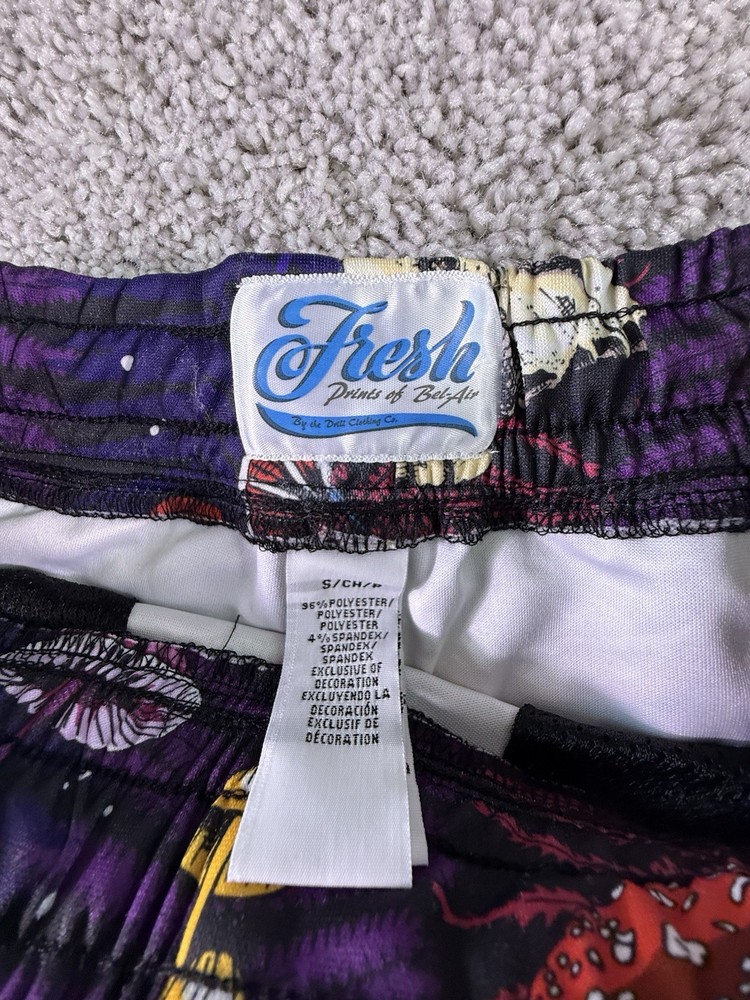 Pattern: Graphic Print Performance/Activity: Basketball Garment Care: Machine Washable Fit: Athletic Material: Polyester, Spandex Brand: Fresh Prince Of Bel Air Style: Athletic Country of Origin: China Size: S Size Type: Regular Occasion: Activewear Department: Men Closure: Drawstring Color: Multicolor