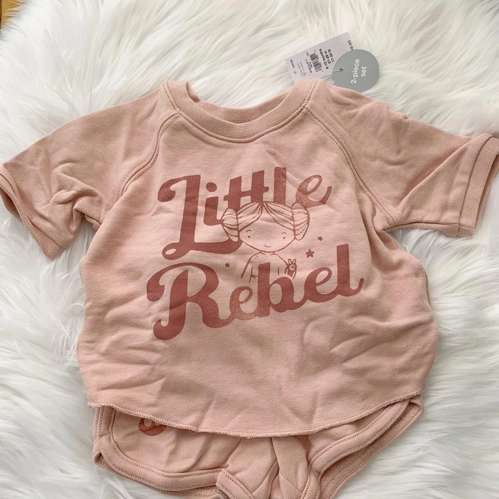 NWT Gap Kids - Blush pink Little Rebel shorts & sweatshirt top, 6-12 mos
