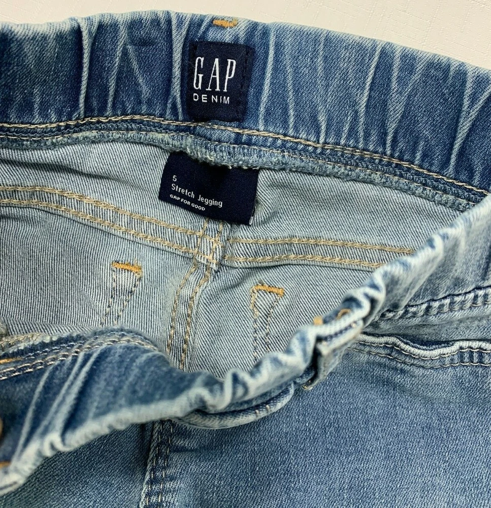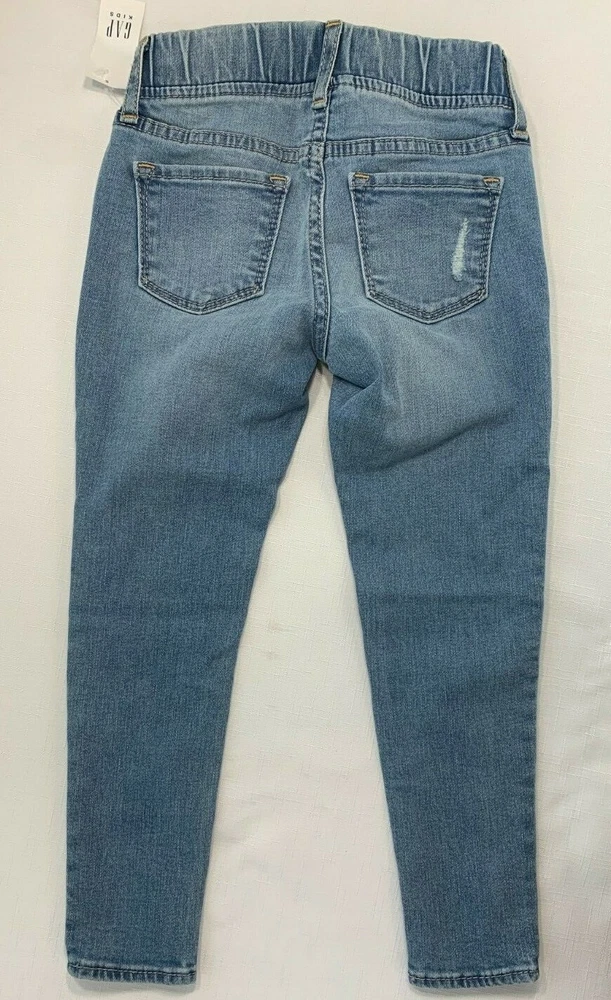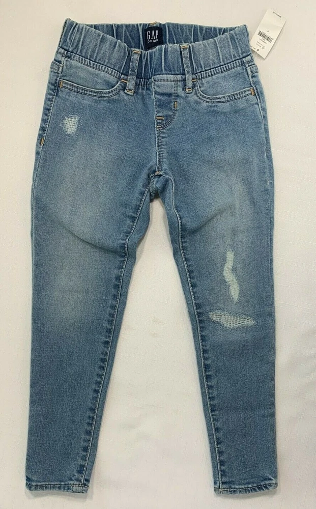 NWT Gap Kids Girls 5 Stretch Denim Distressed Destructed Hipster Jegging Jeans Light indigo denim distressed pull-on jegging with elastic waist. High Stretch denim. Destructed detailing. Back pockets Nice stretch. Fabric is 92% Cotton 7% Esterrell 1% Lycra Size 5 (42-45"; 36-42 lbs.) Waist is about 20" (unstretched) Inseam is 18" Rise is 6" New with tags. RV $44.95 Thanks for looking and happy shopping! SHIPPING DISCOUNTS ON MULTIPLE ITEMS --$1.50 for each additional item! I provide automatic shipping discounts on multiple items using the shopping cart. Just add all items to the shopping cart for calculation. On the item with the highest shipping amount, you will pay that in full. Then you will pay only $1.50 for each additional item (unless it is an item with free shipping, then it will be no additional charge). Items must ship together to the same address. Feel free to email me with any questions!