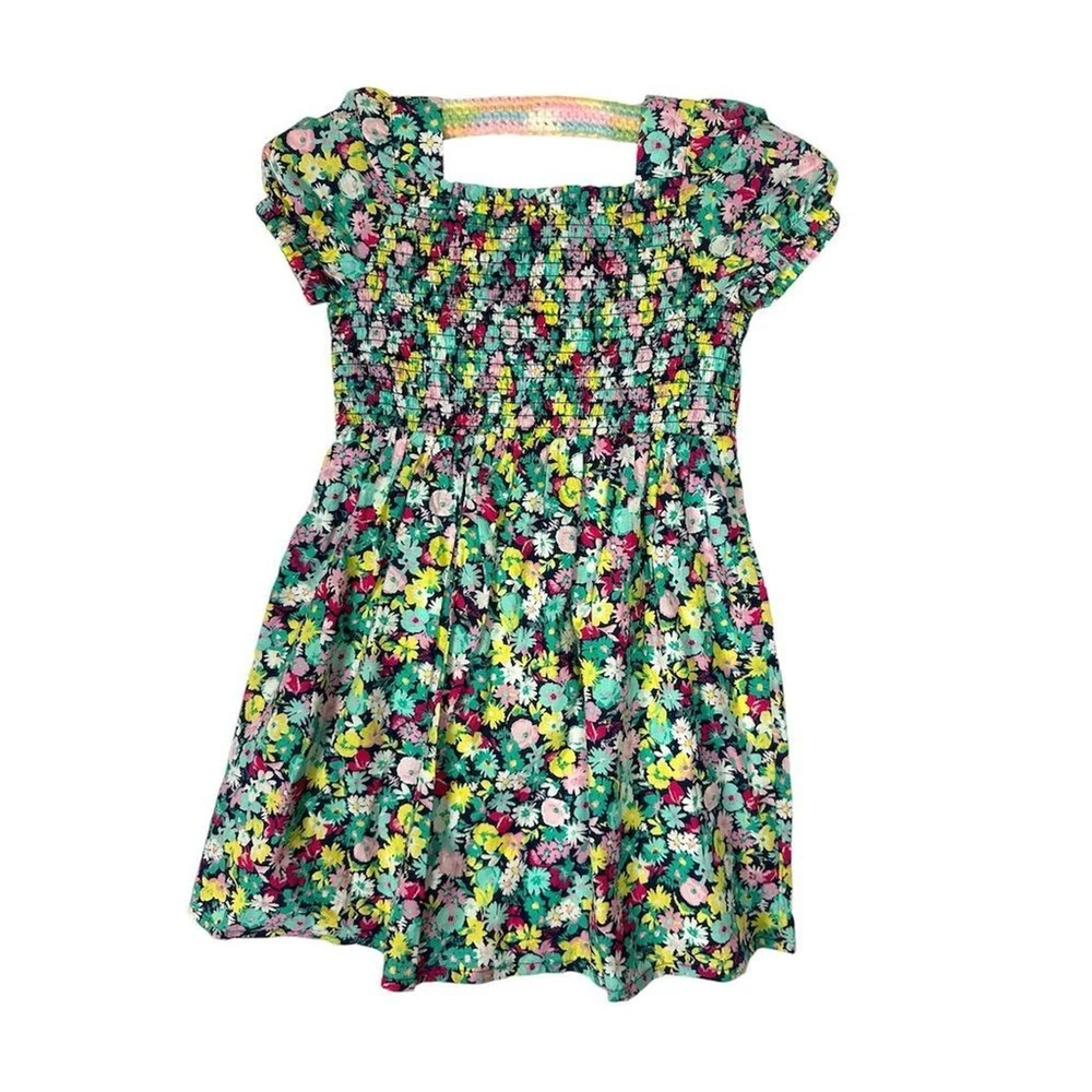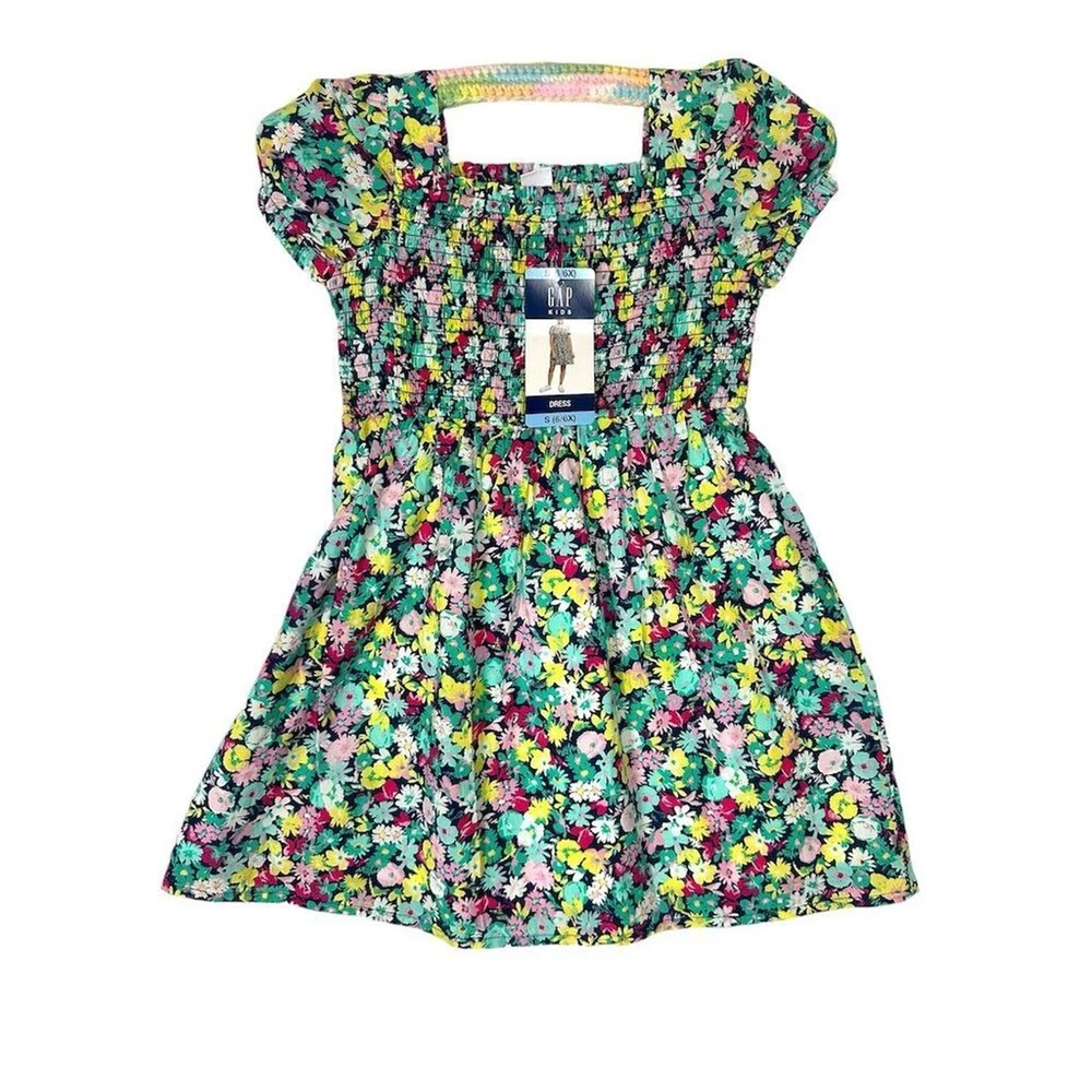 This Gap short sleeve dress for girls features a multicolor floral pattern, perfect for casual spring occasions. It is designed with a short length and includes a smocked bodice and built-in slip for added comfort. Made from lightweight and breathable materials, it is available in size S. The dress is new with tags and in flawless condition. Brand: Gap Style: Short Sleeve Dress Color: Blue Department: Girls