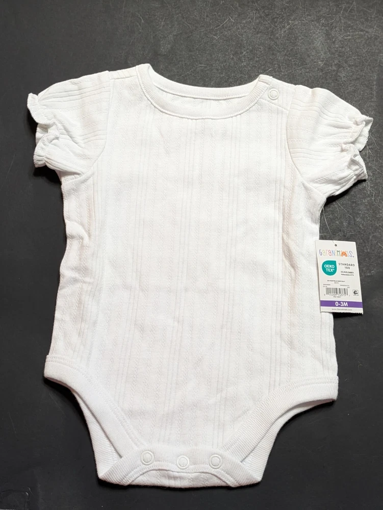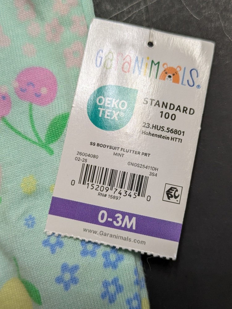 Lot of 6 Brand New Garanimals Baby Girl Mix & Match Summer Clothes - Size 0-3M Get your little one summer-ready with this adorable, coordinated 6-piece wardrobe! Every item in this bundle is New with Tags (NWT) and features the OEKO-TEX Standard 100 certification, ensuring the fabrics are safe and gentle for a newborn's delicate skin. What’s Included in This 0-3M Bundle: (1) French Terry Cargo Short (White): Extra soft and stylish with functional side pockets. (1) Bike Short Solid (Light Pink): Comfortable, stretchy rib-knit basic. (1) Bike Short Solid (Yellow): Bright and cheery coordinating rib-knit short. (1) SS Chenille Tee (White): Features a beautiful, textured pink and green butterfly graphic. (1) SS Pointelle Bodysuit (White): Classic white bodysuit with a delicate, breathable pointelle knit pattern. (1) SS Bodysuit Flutter Prt (Mint): Refreshing mint green floral and cherry print with sweet flutter sleeves. Condition Details: All 6 pieces are 100% authentic and brand new with original retail tags. Kept in a Smoke-Free environment. Shipping & Returns Shipping: Ships securely via USPS Ground Advantage. We offer combined shipping discounts for multiple purchases! Returns: 30-day returns accepted if all items are returned NWT with tags attached