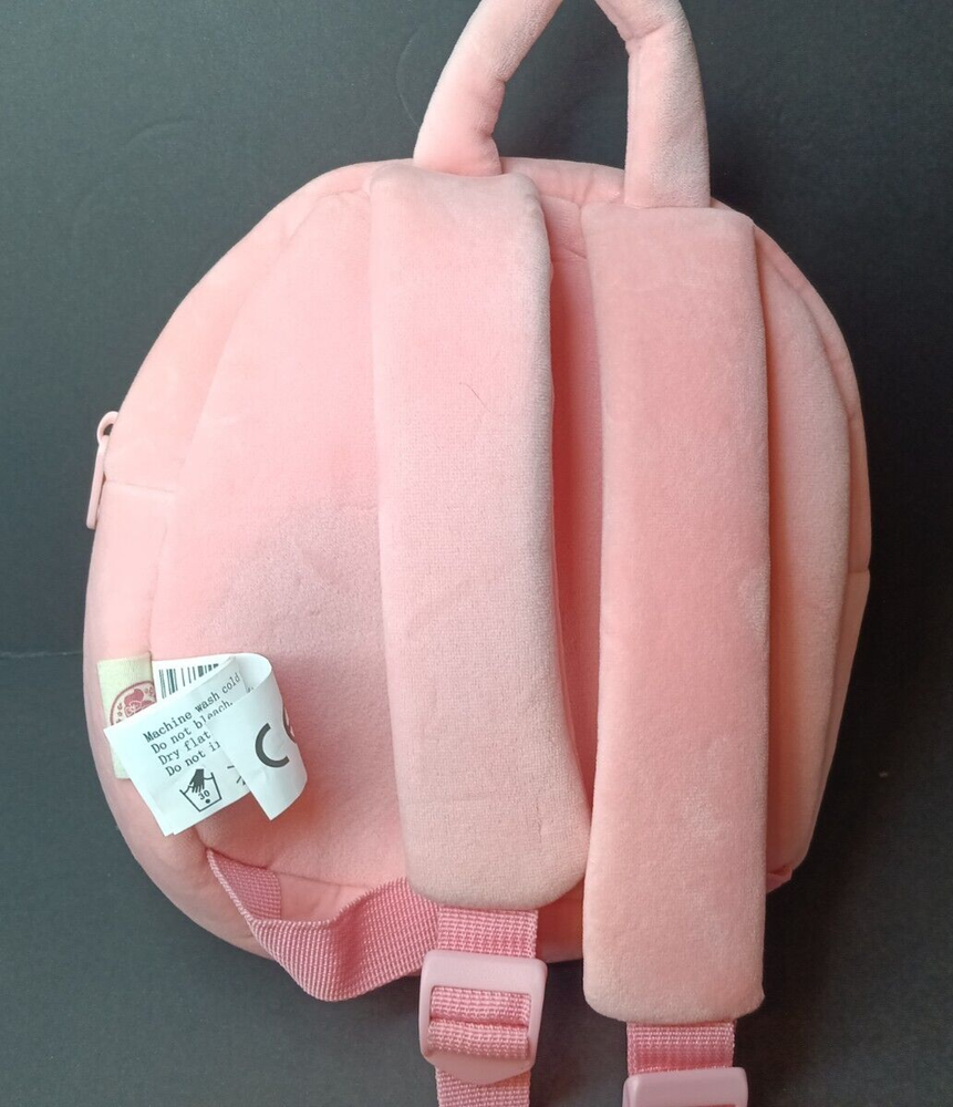 This adorable new with tags backpack measures 9" in width and 10" in height. It has its original tag and adjustable straps. Please see all photographs as they are part of the description. Shipped with USPS Ground Mail.