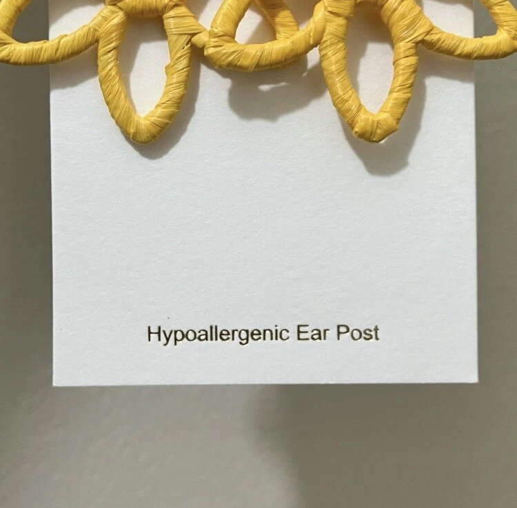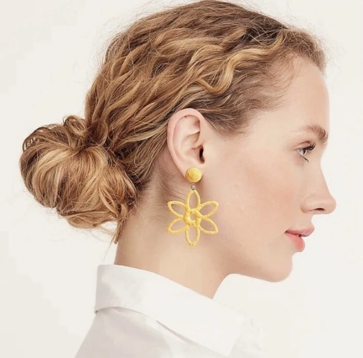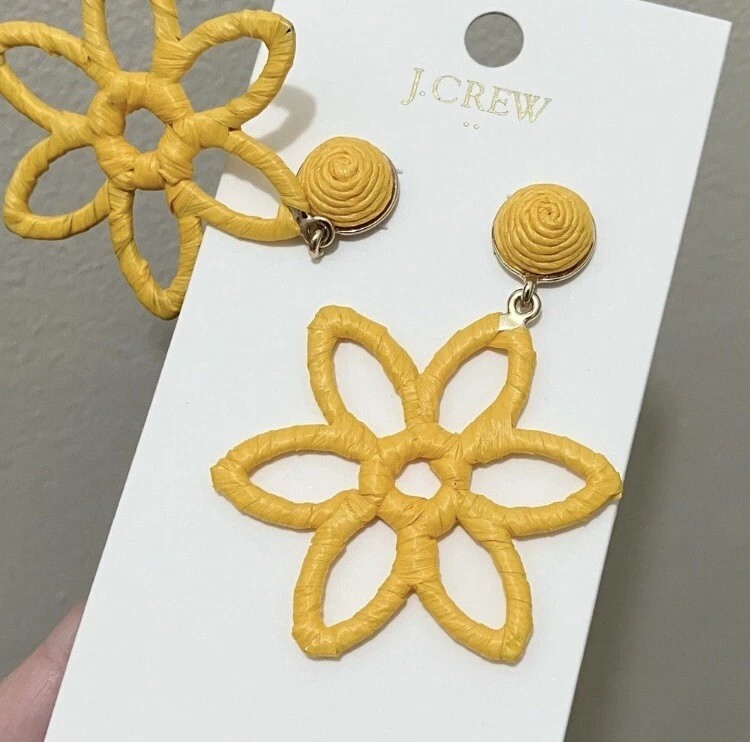 These NWT J. Crew (Factory) Wrapped Flower Statement Earrings are perfect for vacation or any event this spring or summer! They are drop earrings in a warm sunflower yellow color with gold plated accents and hypoallergenic posts. These floral, boho earrings are new with tags and one size (OS). -Item Details: Gold-plated recycled-zinc casting, gold-plated steel stamping, faux-raffia fabric, hypoallergenic titanium posts, disc clutches -Length: 2.5 Inches -Color: Sunflower -NWT *Note: There are a few thread imperfections where you can see glimpses of the metal underneath- mostly on the left earring (photo #5). Measurements are available upon request. Offers welcome! Please let me know if you have any questions! Items come from a smoke-free home and are packaged with care. Thank you for considering supporting my small business! Tags: Floral, Flower, Boho, Bohemian, Hippie, Beach, Beachy, Garden Party, Summer Wedding Guest, Whimsical, Preppy, Drop, Dangle, Spring, Resort, Resortwear, Yellow
