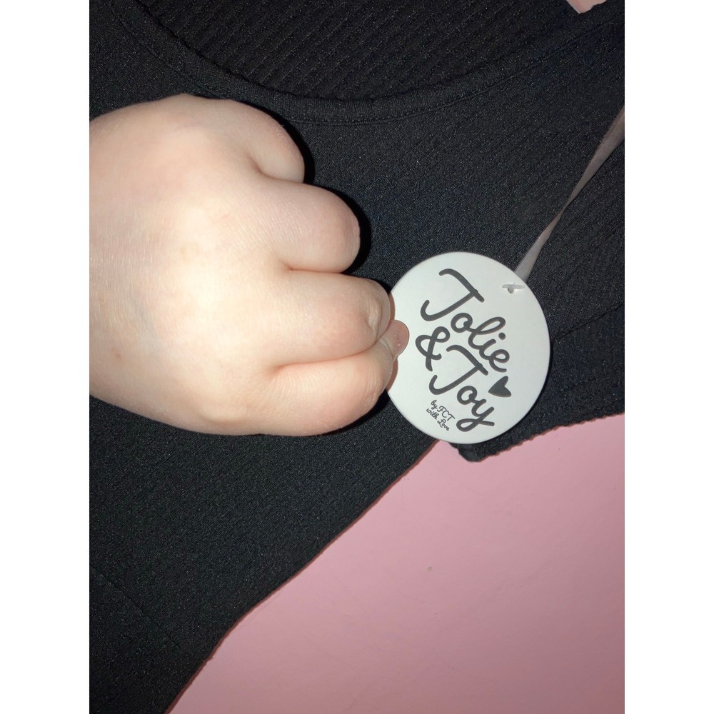 Brand: Jolie & Joy Size: Large Color: Black Condition: NWT Does have some dirt staining on the bottom of the pant legs see pictures should come out in the Wash! Measurements: Armpit to armpit 16 inches, Stretches to 19 inches, Inseam 32 inches, Length 55 inches. Materials: 95% Polyester, 5% Spandex. Made in: China. Washing Instructions: Machine Wash. Style: Wide Leg Jumpsuit. Offers welcome! Bundle to save! Tags: Wide Leg, Ribbed, Comfy. Smoke-free, cat-friendly home.