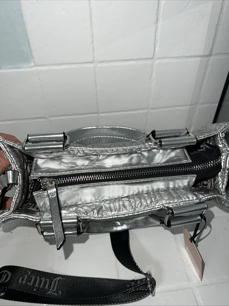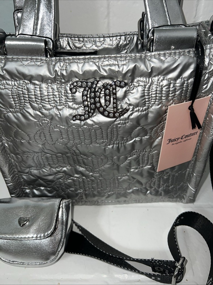 NWT Juicy Couture Pink League Mini Tote Handbag Cross Body Silver w/ Coin Purse. Condition is New with tags. Shipped with USPS Ground Advantage.