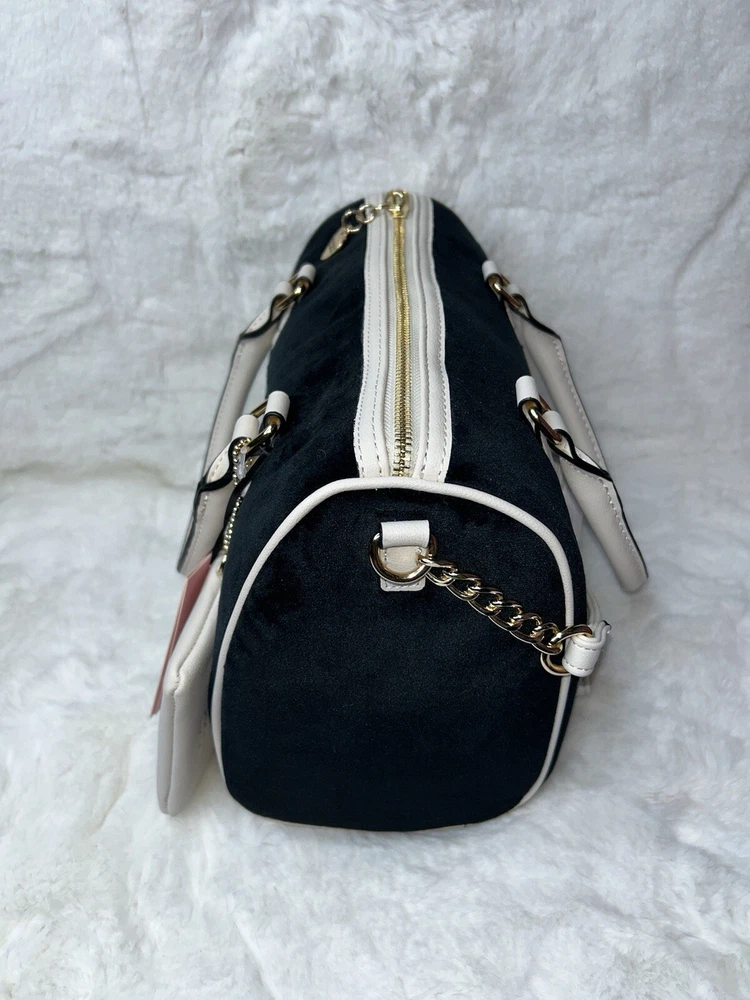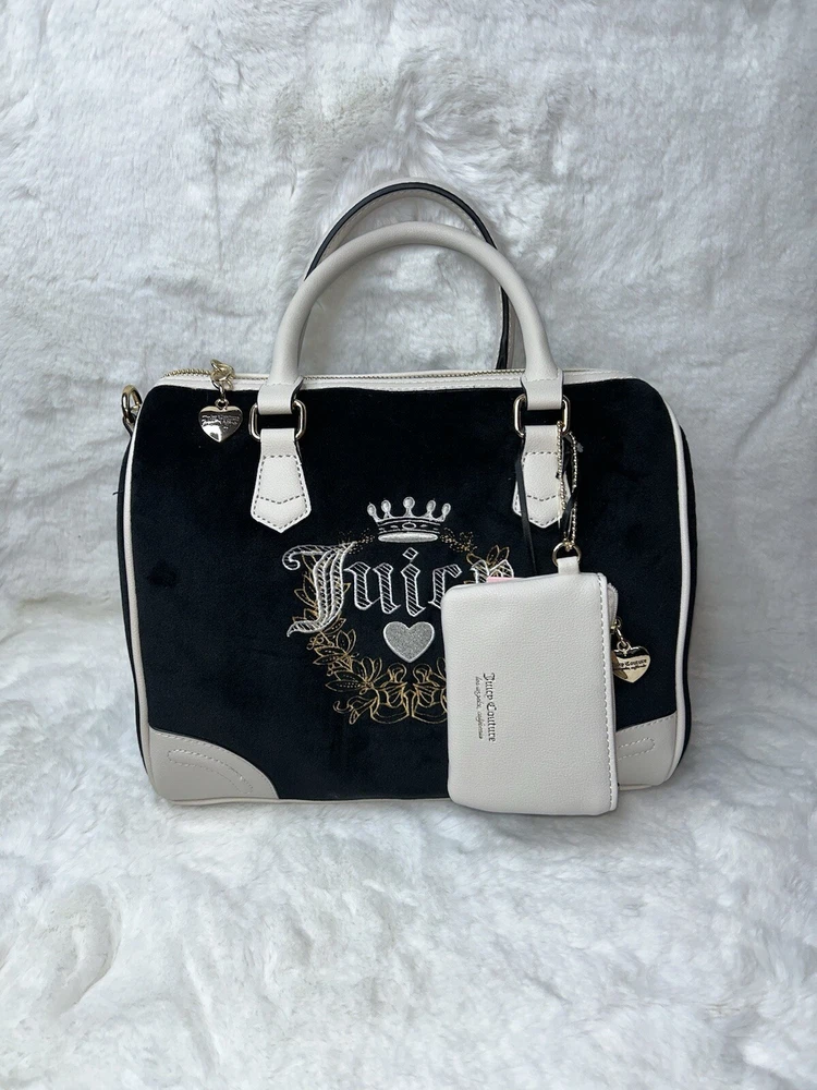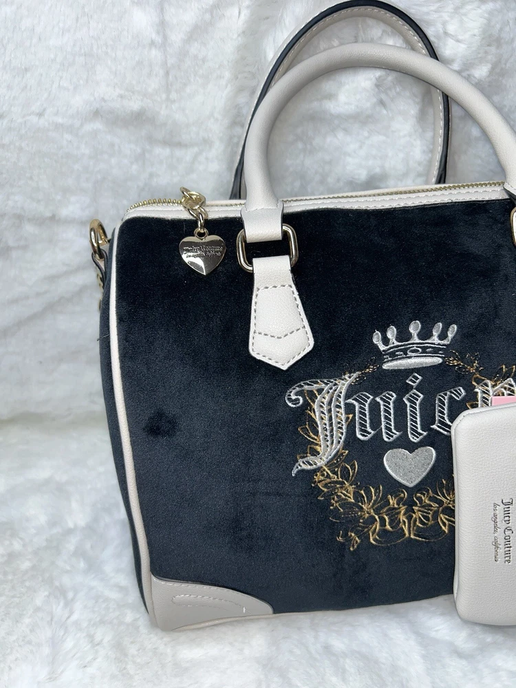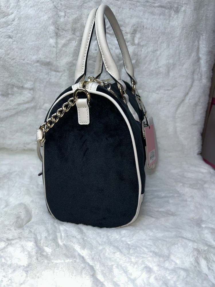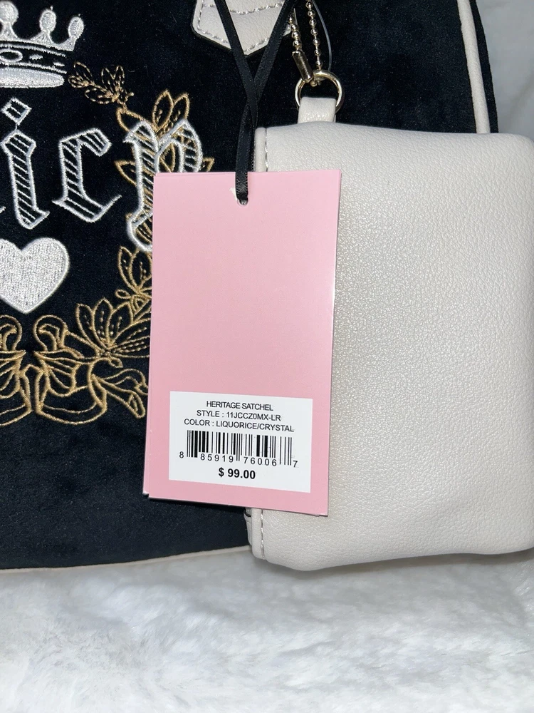 NWT Juicy Couture Velour Heritage Satchel Purse Black Liquorice Crystal