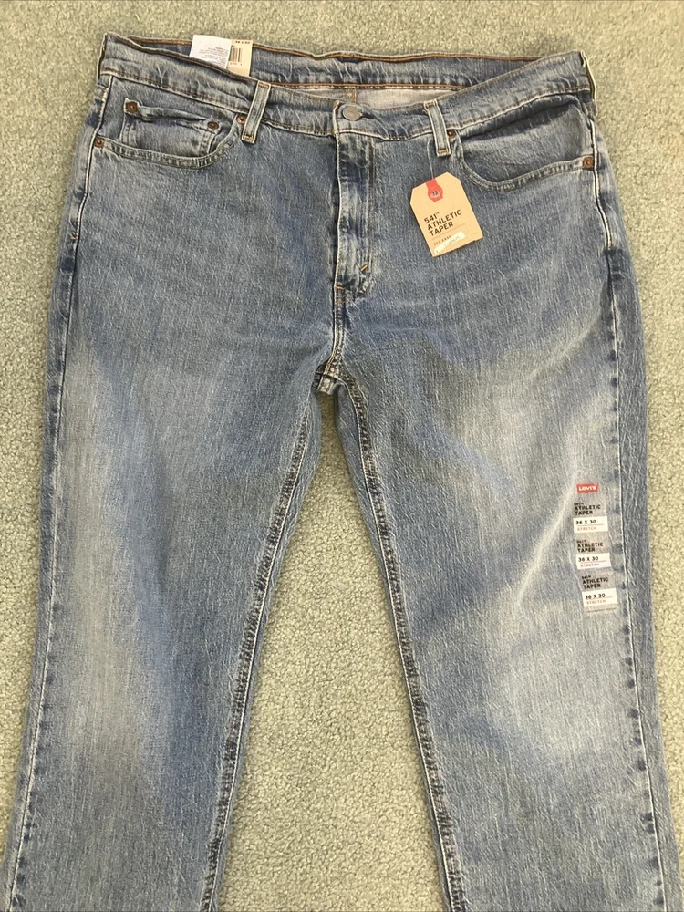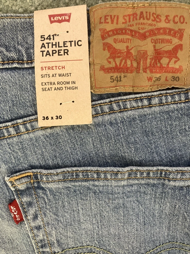 NWT Levis 505 Jeans Mens Straight Leg Stretch Regular Fit Blue Light Wash 36”x30