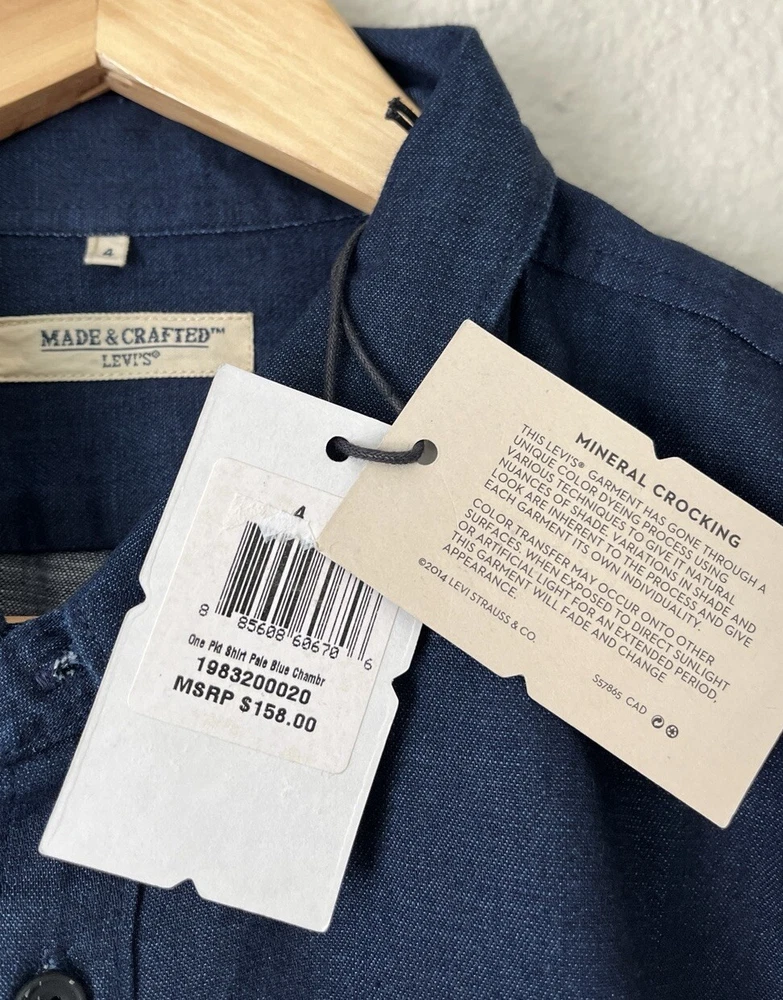 New with tags Levi’s Made & Crafted dark wash denim chambray button down shirt mens size XXL 100% cotton