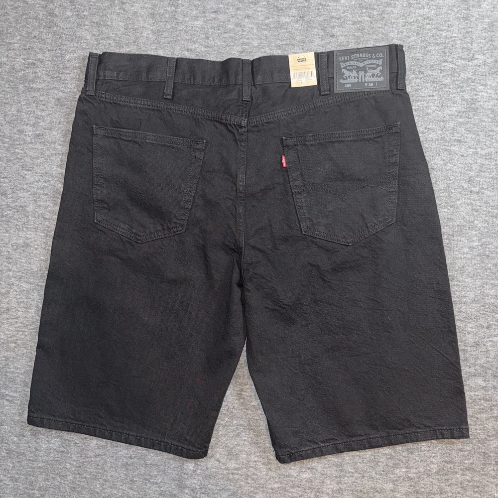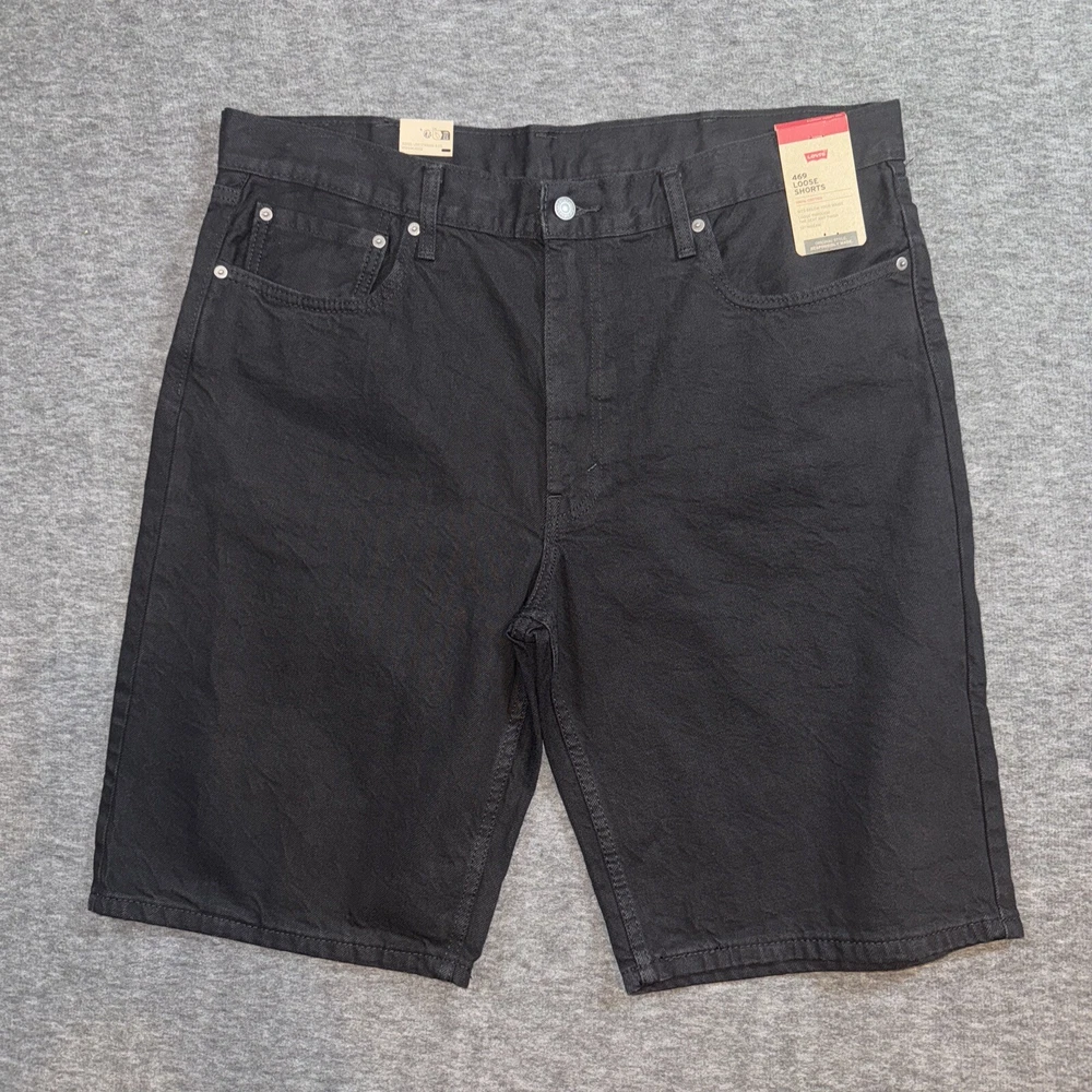 Elevate your summer wardrobe with these NWT Levi's Men's 469 Loose Fit Baggy Black 5-Pocket Jean Denim Shorts. These shorts are perfect for any casual occasion, with a flat front design and zip closure for a comfortable fit. The medium wash denim fabric and 100% cotton material ensure durability and breathability, while the pockets provide ample storage space for your essentials. The shorts come in a size 40 waist and 12 inch inseam, with a loose fit and regular size type. The black color and denim fabric type make these shorts versatile and stylish, ideal for any fashion-conscious man. The Levi's brand and model 469 ensure quality and reliability, making these shorts a great addition to any wardrobe.