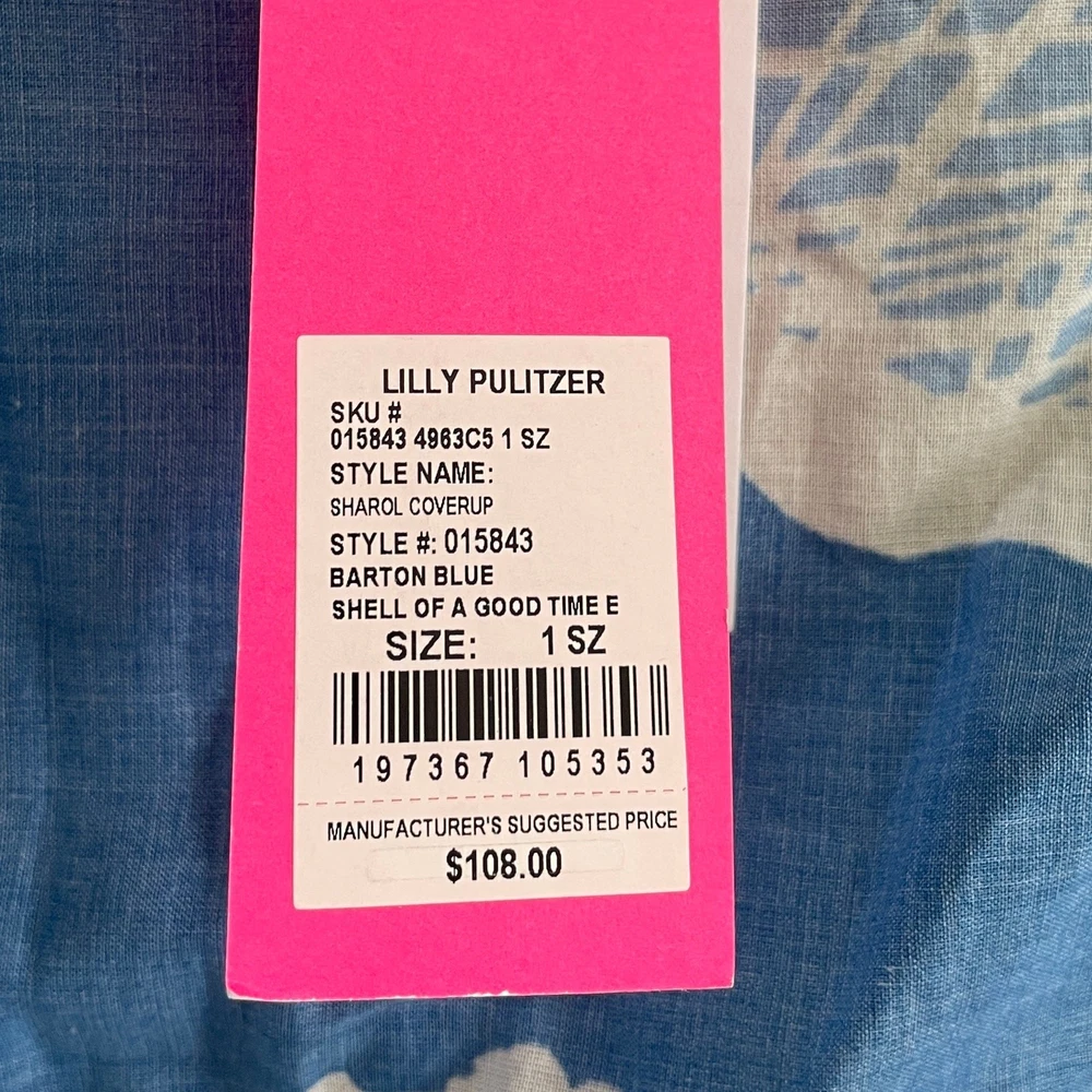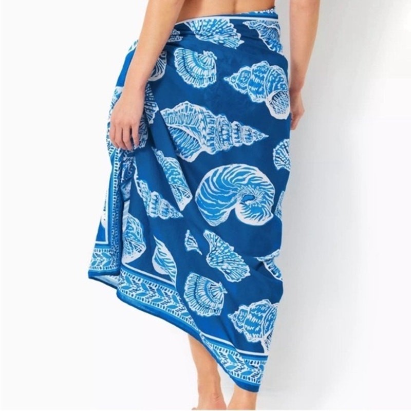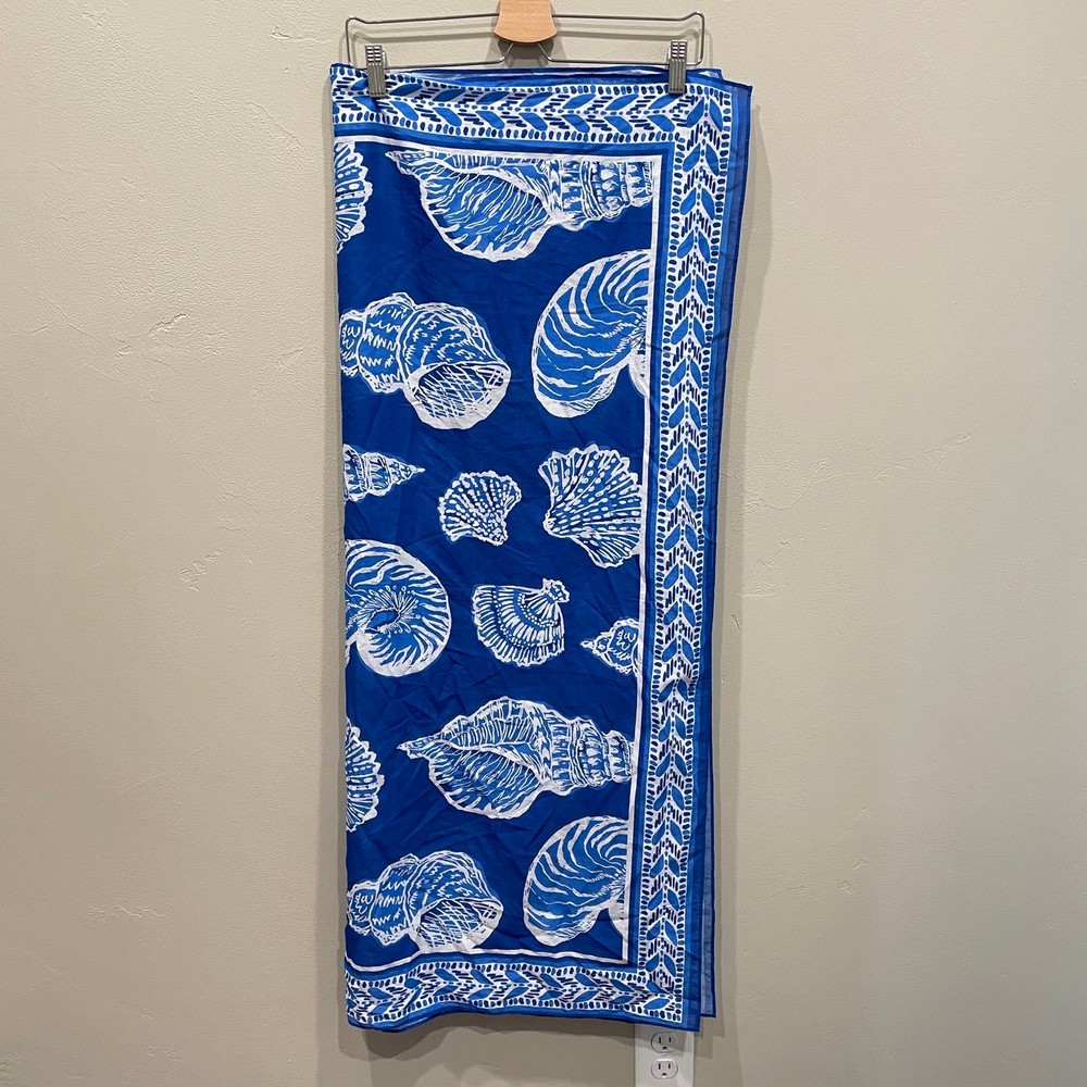 Lilly Pulitzer Sharol Pareo Swim Cover Up in Barton Blue Shell of A Good Time New with tags No visible flaws Size: One Size / 44"L x 68.5"W Color: Barton Blue *Color may differ in photos due to lighting. Crafted of breezy cotton, Lilly Pulitzer's long Sharol pareo features a beautiful seashell print and geometric border. Self-tie closure 100% cotton Hand wash 44"L x 68.5"W