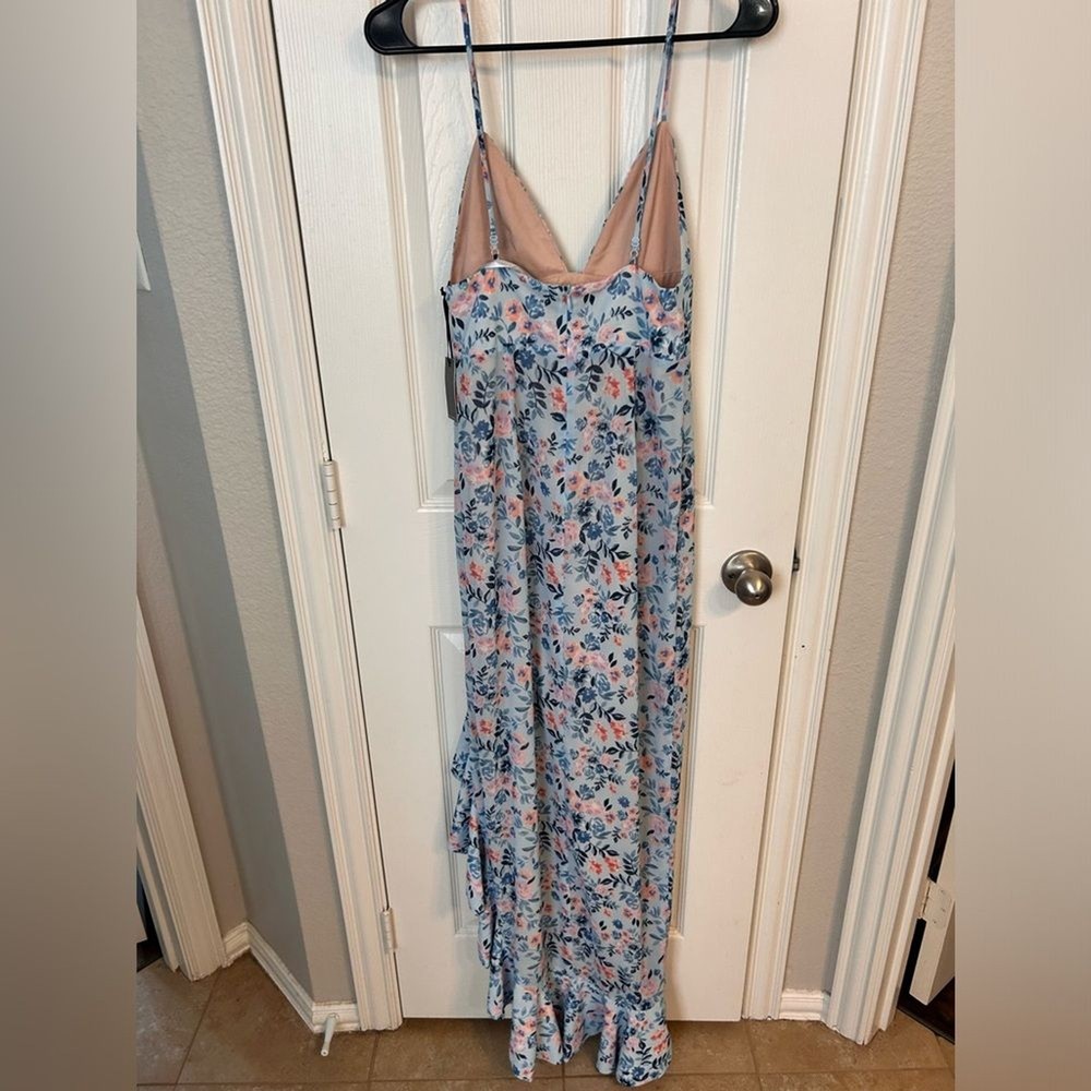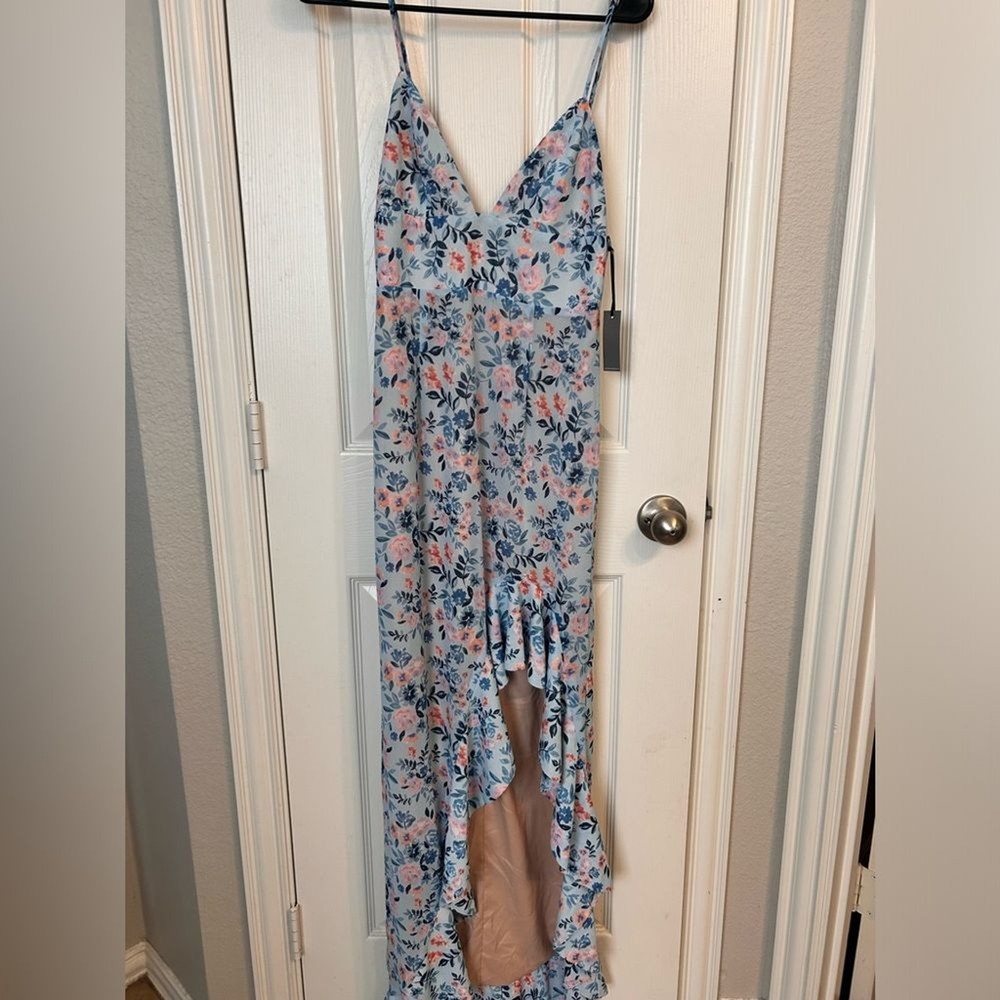 Lovers + Friends Ahamani Gown in Meadow Floral Size S Your next soiree deserves something extravagant: Lovers + Friends Ahamani Gown. Putting you at the center of attention, this hi-low dress is accented with a cascading ruffled trim that allows you to show off your favorite heels. Self: 100% poly Lining: 97% poly 3% elastane Hand wash cold Fully lined Adjustable shoulder straps Asymmetrical hem Hidden back zipper closure Tags: floral, assymetrical, ruffles, casual, wedding