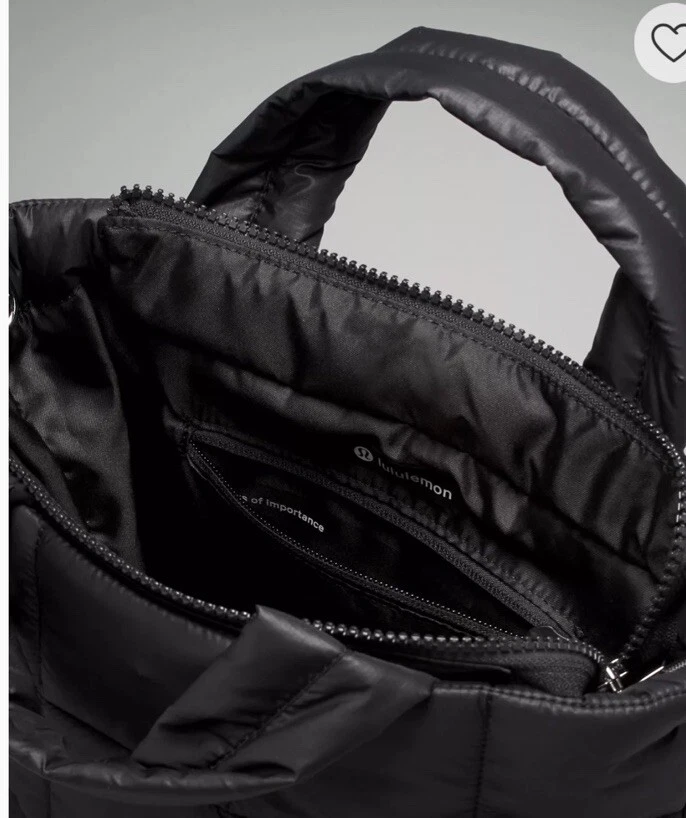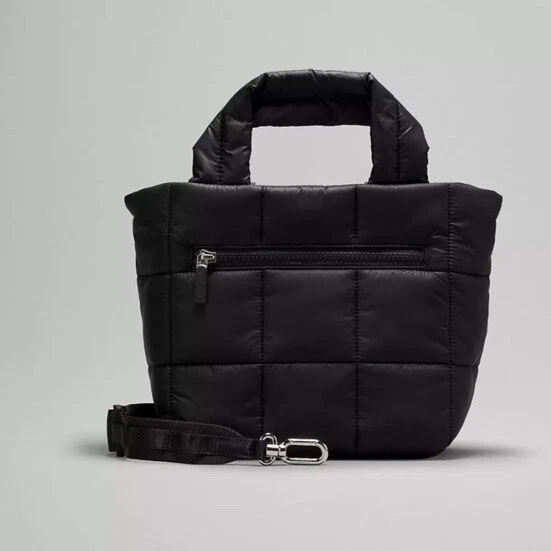 This Lululemon Quilted Grid Tote Bag Mini is perfect for any occasion, whether you're traveling, running errands, or working. It features a zip closure and a detachable strap for versatile carrying options. The bag is made of durable nylon with a quilted finish and silver hardware. The strap accent and Lululemon logo add a touch of style. The bag has a lightweight feel and is lined with polyester for added protection. It is a two-tone model and comes in black. The bag is perfect for women who want a stylish and practical accessory. It has a square shape and a crossbody strap handle style. The bag is part of the Lululemon product line and is customized-free. This tote bag is a great addition to any wardrobe and is sure to be a go-to option for any occasion.