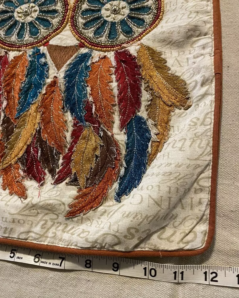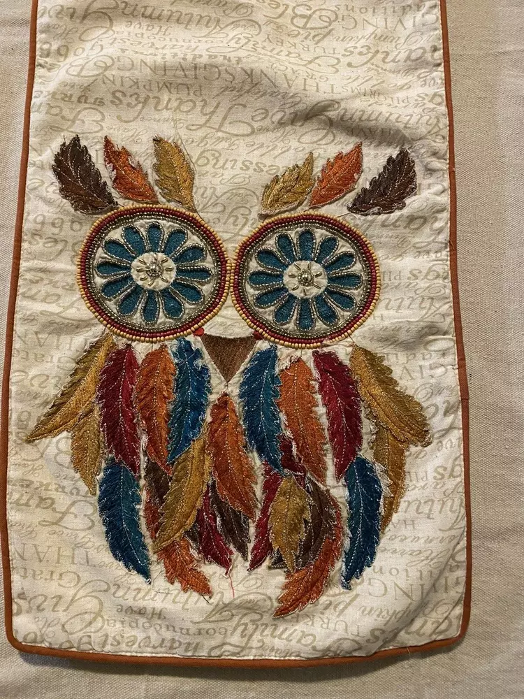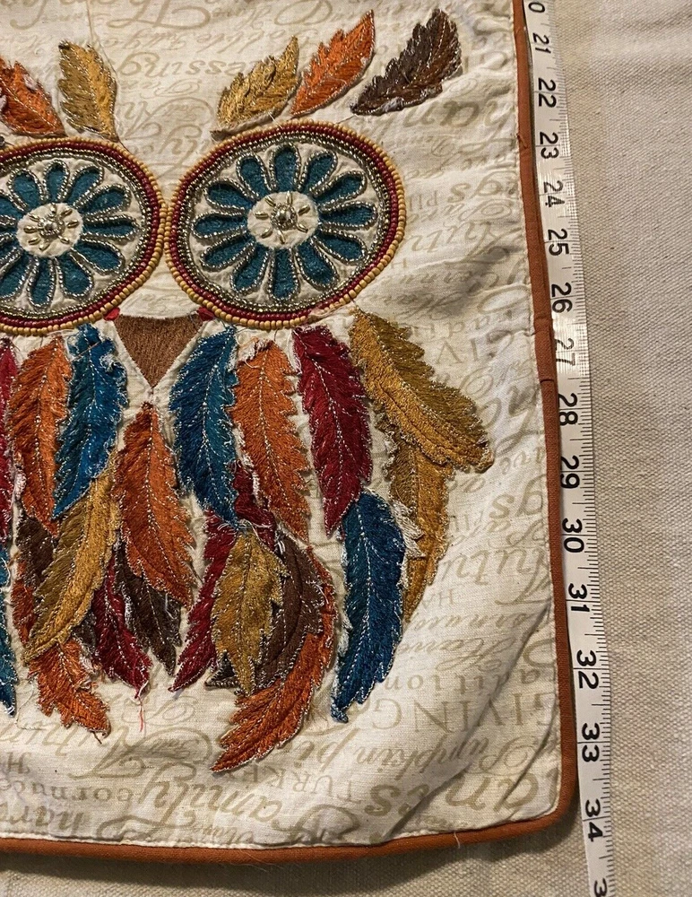 NWT Luxe Habitat Table Runner Boho Beaded Embroidered Owl Thanksgiving Fall