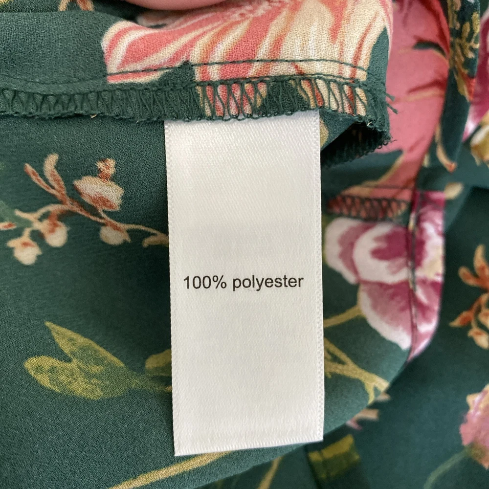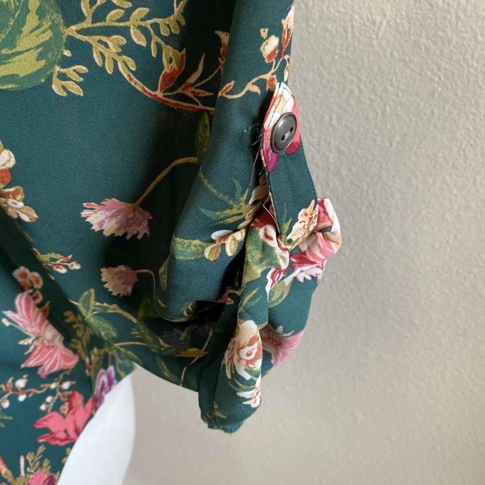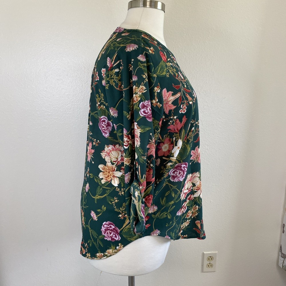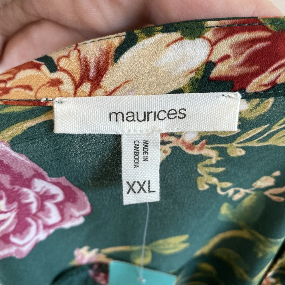 New With Tags! Very pretty hunter green blouse with floral pattern. Lightweight with roll tab sleeves. Women’s XXL. Displayed on a size 18/20 mannequin