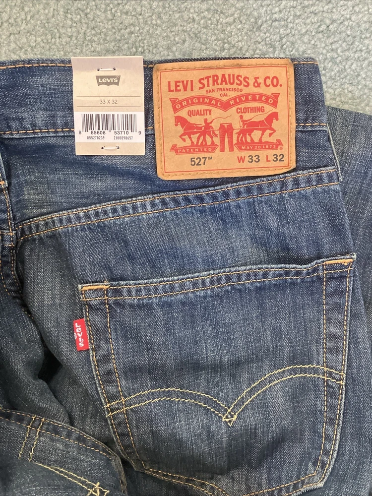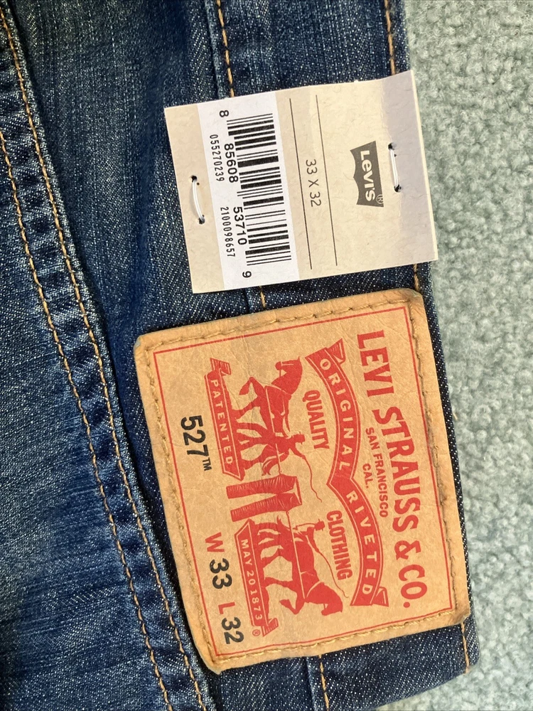 NWT Men’s Levi's 527 Boot Cut 100% Cotton Dark Blue/Andi Jeans Size 33”x32”