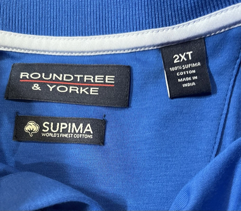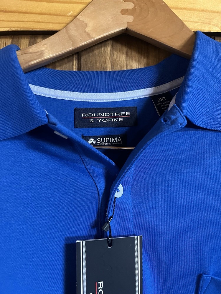 NWT Men's Roundtree & Yorke Short Sleeve Blue Golf Polo Pocket Shirt SUPIMA Cotton