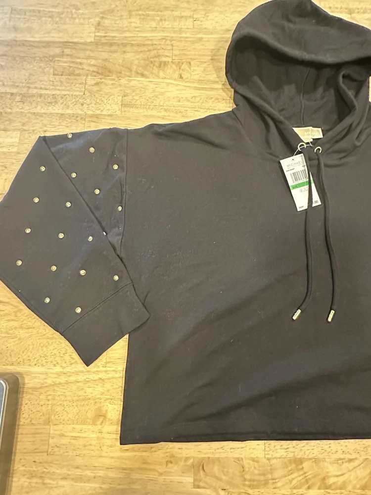 NWT Michael Kors Gold Studded Black Hoodie Women's Small 2024 MK Designer