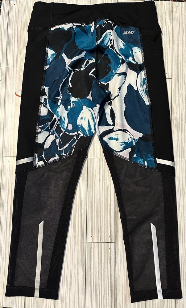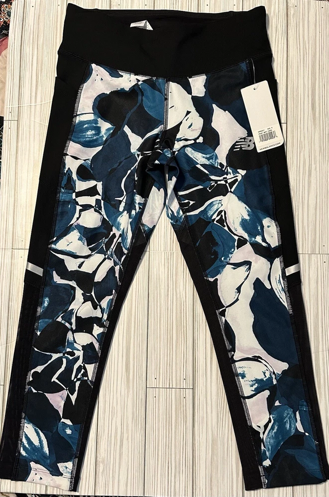 These NWT New Balance Print Impact Capri Leggings in black are perfect for any active occasion. The leggings are made with a comfortable mesh fabric and have compression on the legs. The brand, New Balance, is known for their quality activewear that is perfect for gym & training, yoga, and running & jogging. The leggings are size small and have a regular fit.
