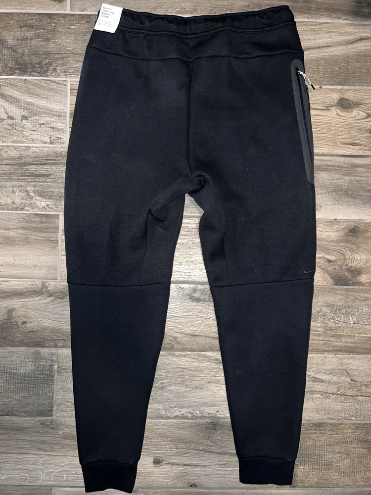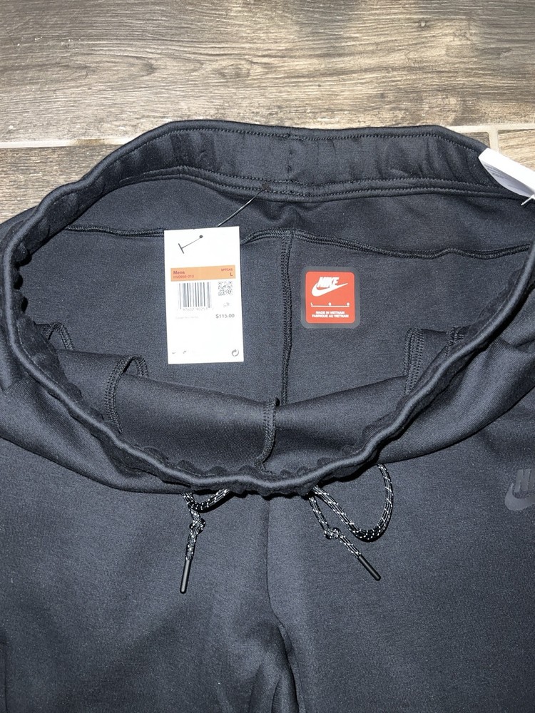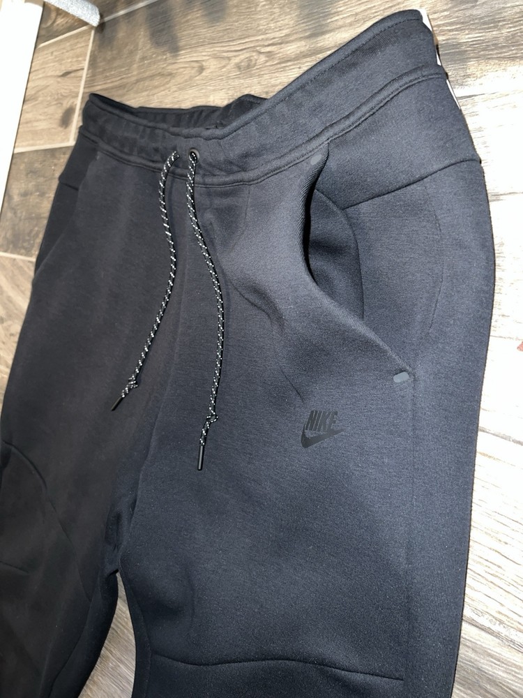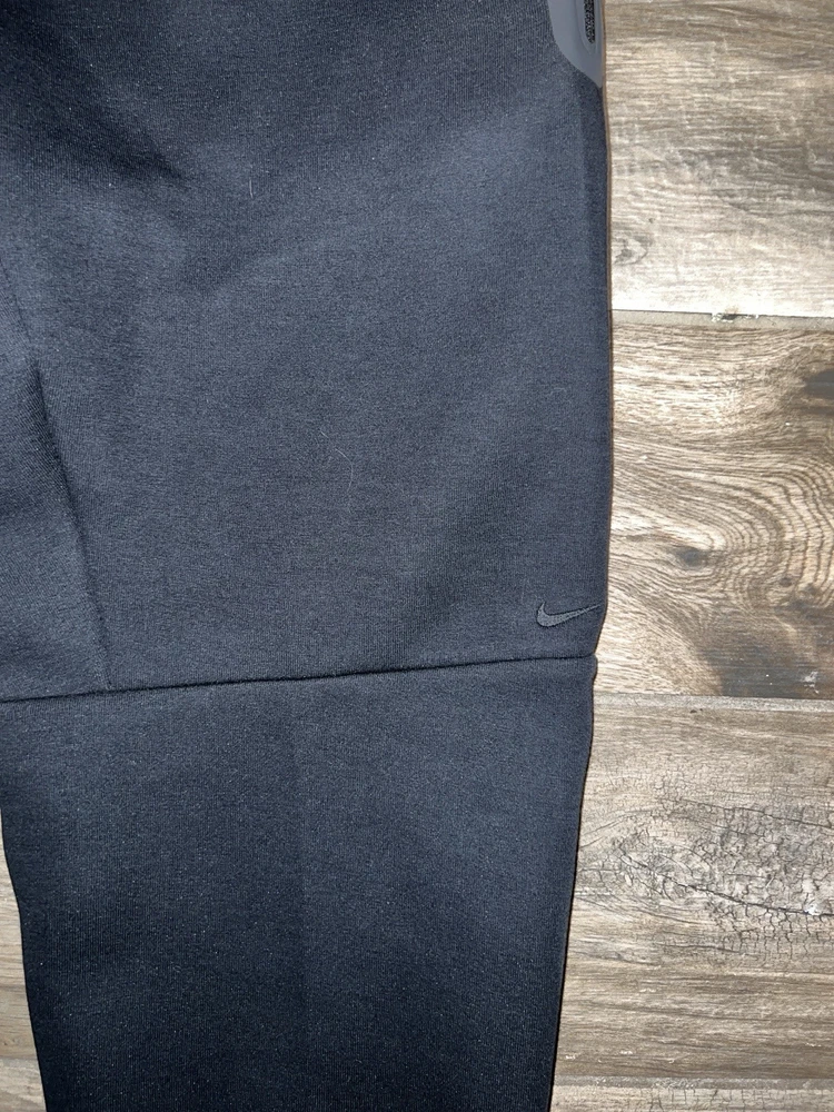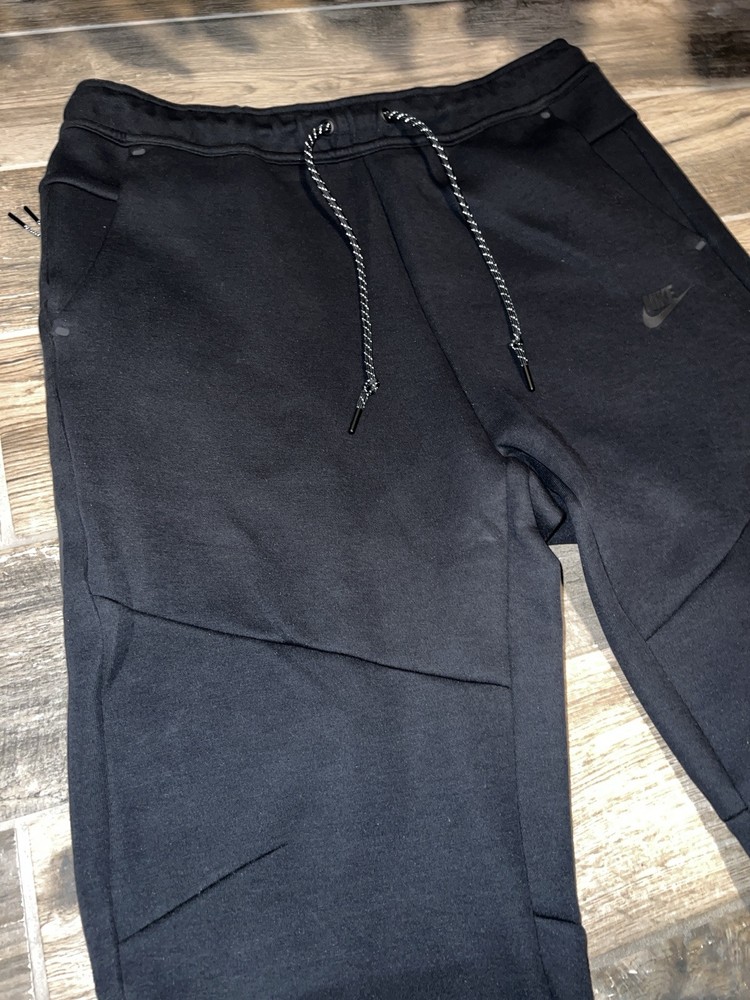 Elevate your sportswear game with these Nike Tech Fleece Joggers. The black cotton blend material and tapered leg style make them perfect for any occasion, whether it's for a workout or casual wear. The drawstring closure and elastic waist provide comfort and convenience while the pockets add functionality. These joggers are not only stylish, but also machine washable for easy care. The Nike Tech Fleece product line is known for its quality and durability, making these joggers a great investment for any athleisure or sports enthusiast.