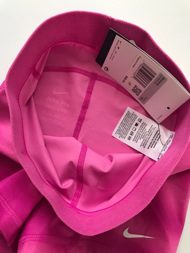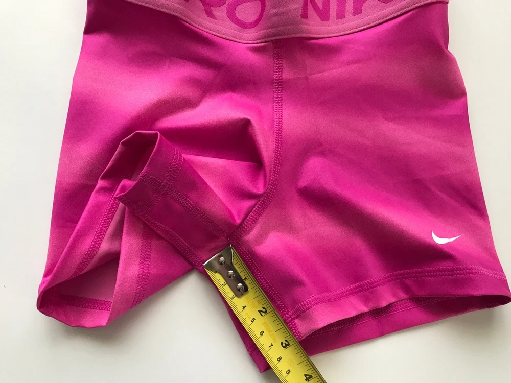 Nike Women's Pro 3” Shorts SUPPORTIVE AND STRETCHY. The Nike Pro Shorts are made with stretchy, sleek and supportive fabric that wicks sweat to help you stay dry and comfortable during your workout. Benefits Nike Dri-FIT technology helps you stay dry, comfortable and focused. A wide, mid-rise elastic waistband feels supportive around your core. Product Details New with tags. Color: Pink (The real color is in between those in stock photos and other photos taken on actual shorts. Darker pink than those in the first three pictures, and lighter than those in other pictures) Size: Women's XS Medium support Tight fit for a body-hugging feel 83% polyester/17% spandex Machine wash Style: IH7636-675 Made in Vietnam