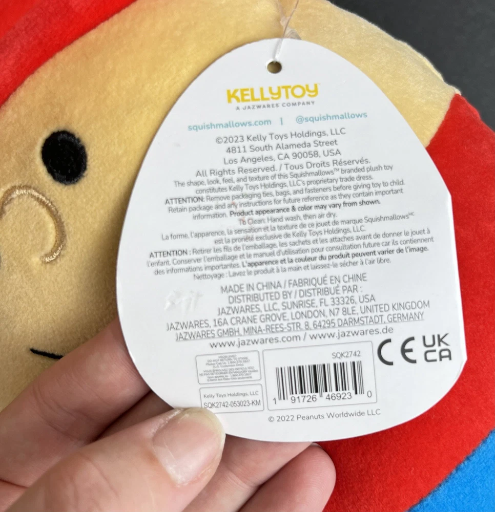 This original 10" Squishmallows plush doll features the beloved Peanuts character, Charlie Brown, and is perfect for Christmas or any occasion. The multicolor design and soft texture make it suitable for all ages, from infants to adults. As a member of the Squishmallows brand, this plush doll is crafted with high-quality materials and is sure to become a cherished addition to any collection. Whether you're a fan of Peanuts or just love cuddly toys, this Squishmallows plush doll is a must-have.