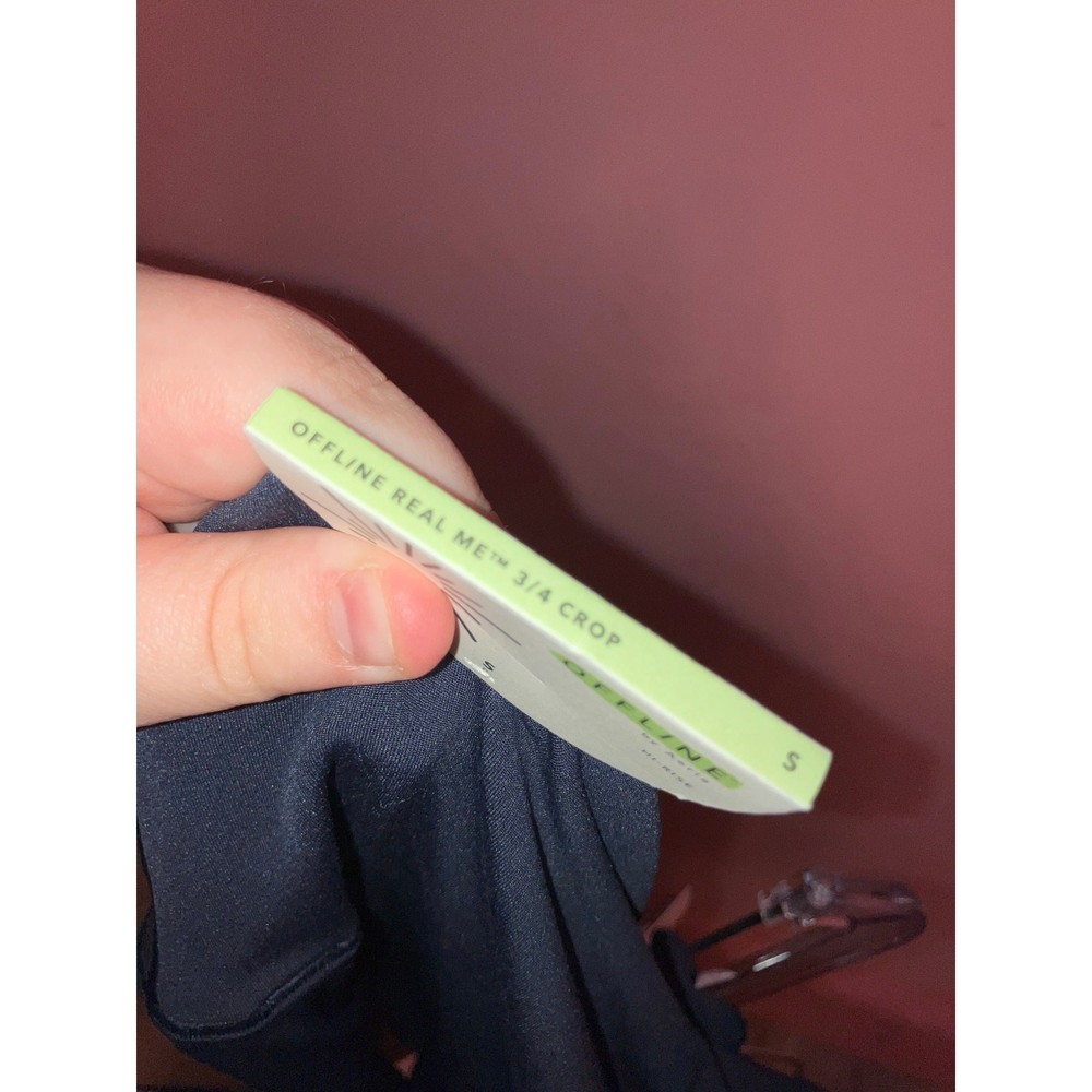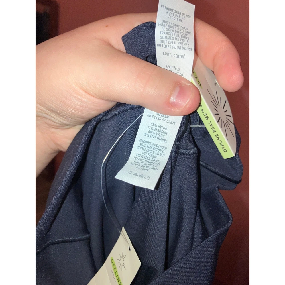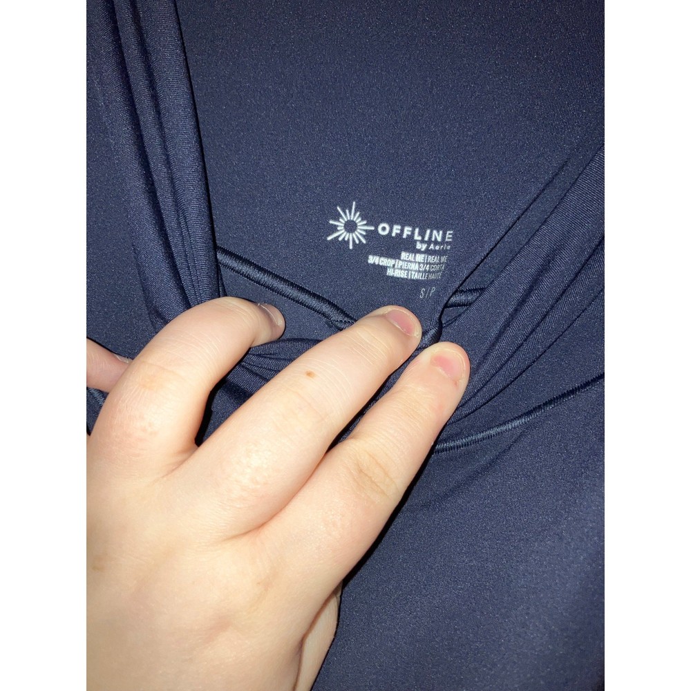 Brand: Offline by aerie Size: Small Color: Navy blue Condition: NWT Retailed for $39.95 Measurements: Waist 11 inches, Stretches 17 inches, Rise 9 inches, Inseam 20 inches, Length 29 inches. Materials: 88% Nylon, 12% Elastane. Made in: Vietnam Washing Instructions: Machine Wash. Style: 3/4 crop real me leggings. Offers welcome! Bundle to save!