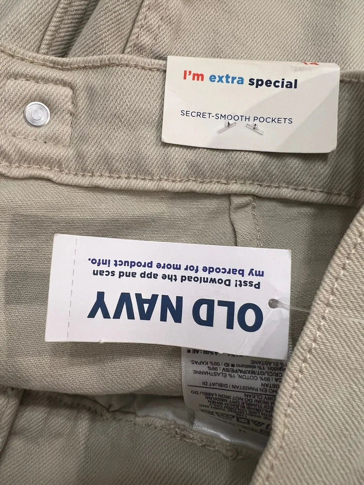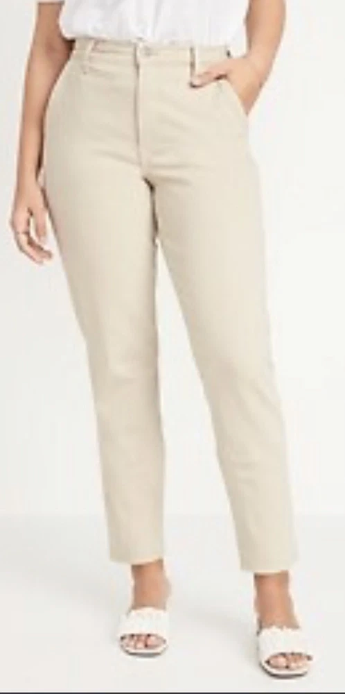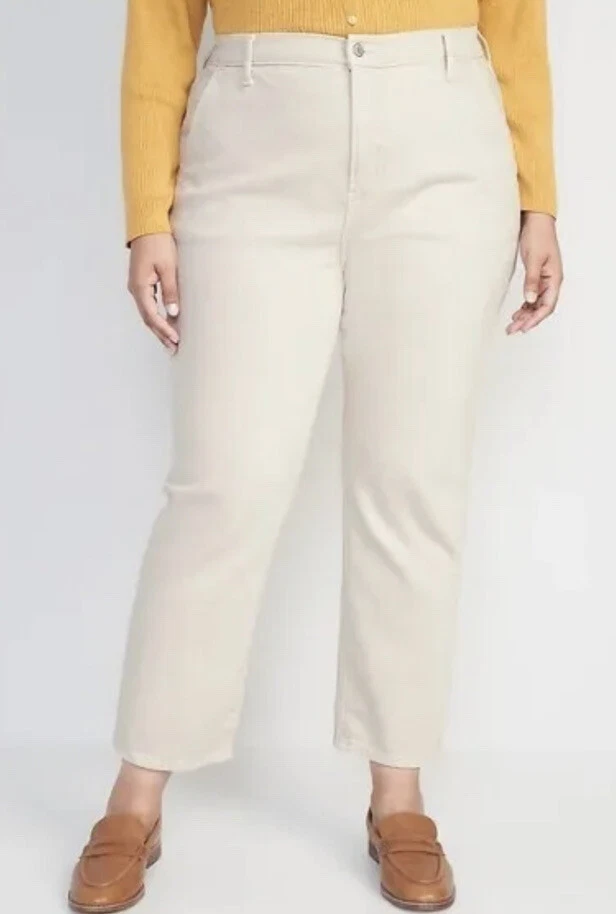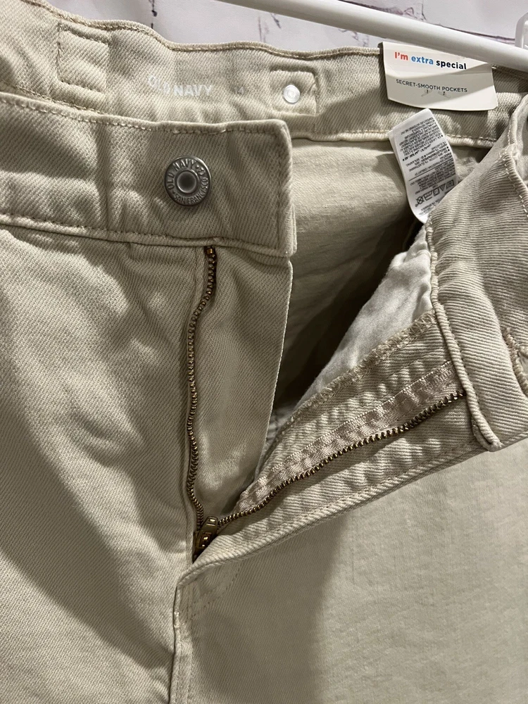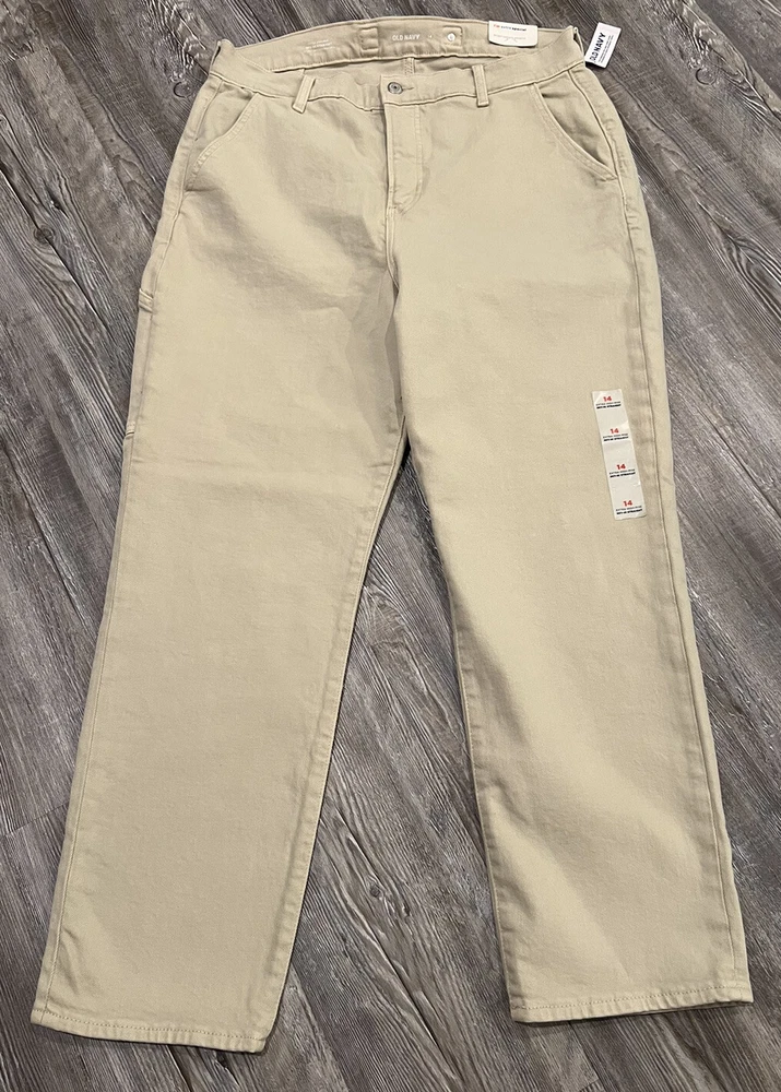NWT Never Worn or Washed MSRP $40 Old Navy Women’s Beige / Sand Extra High Rise Sky-Hi Straight Secret-Smooth Pocket Cotton Blend Stretchy Denim Fabric 99% Cotton / 1% Spandex Adjustable Waist with Back Buckle Workwear Jeans Pants Size 14 Condition is New with Tag attached Please carefully check out all pictures and measurements Waist ~ 18” Rise ~ 13.5” Inseam ~ 28” Legs opening ~ 16” Shipped with Priority Mail 2338 Elevate your wardrobe with these versatile Old Navy pants in size 14. The extra high rise and tapered leg style create a flattering silhouette suitable for any occasion, while the beige color and solid pattern make them a classic addition to your wardrobe. With a zip and button closure, as well as multiple pockets, these cargo pants are both functional and stylish. Made with a comfortable cotton blend and stretch fabric, these pants are perfect for any season, whether it's winter, summer, fall, or spring. The buckle and zipper accents add a touch of detail to these easy-care, secret-smooth pocket pants. Perfect for school or uniform attire, these pants are sure to become a staple in your closet.