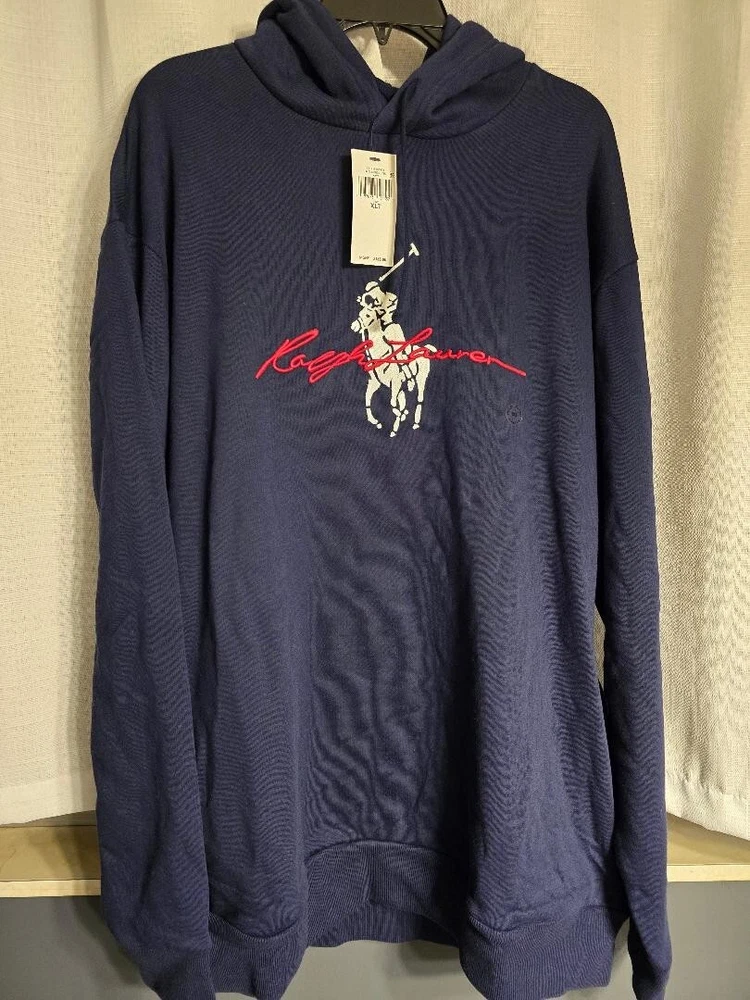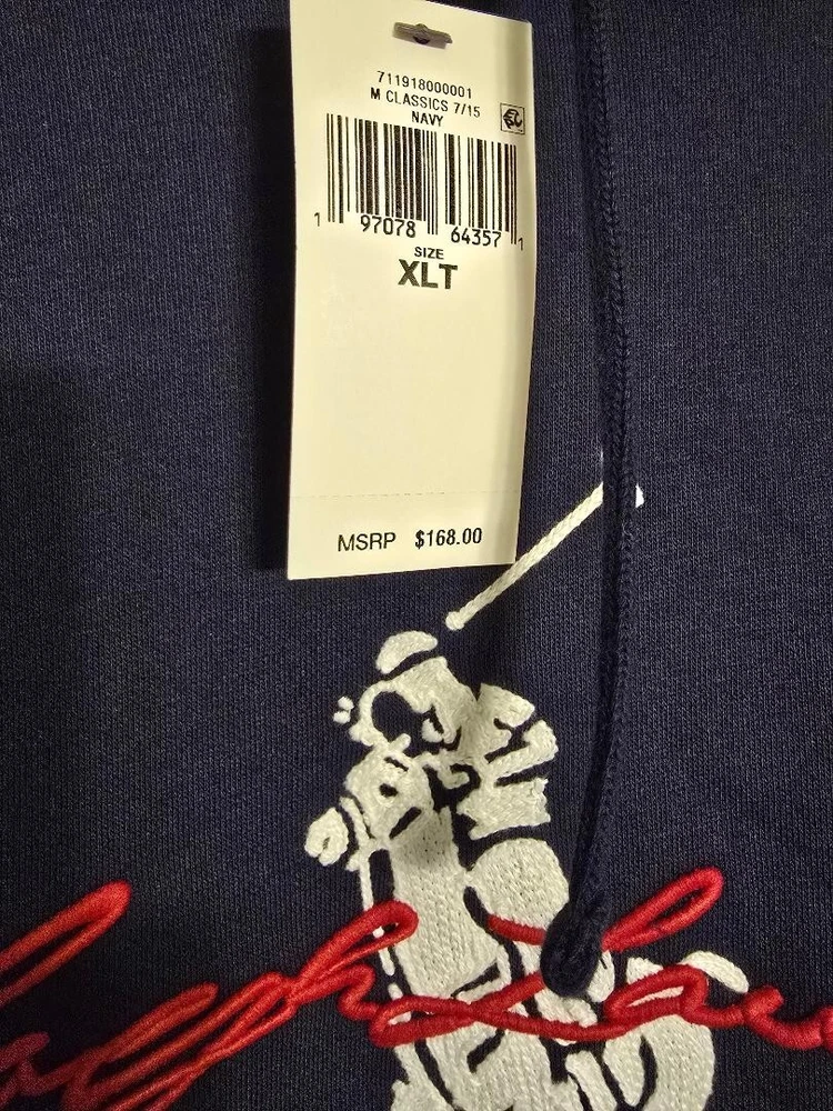 NWT POLO RALPH LAUREN Big Pony Logo Fleece Hoodie Men's Size XLT Navy
