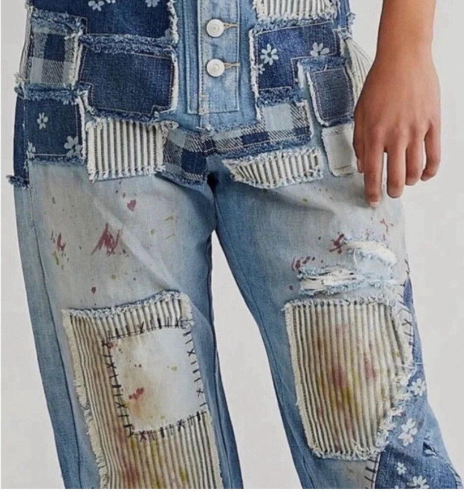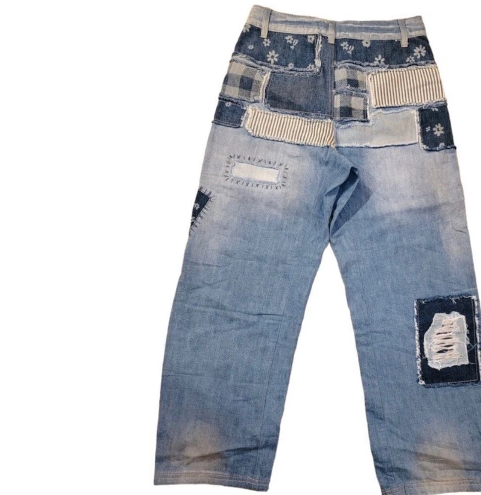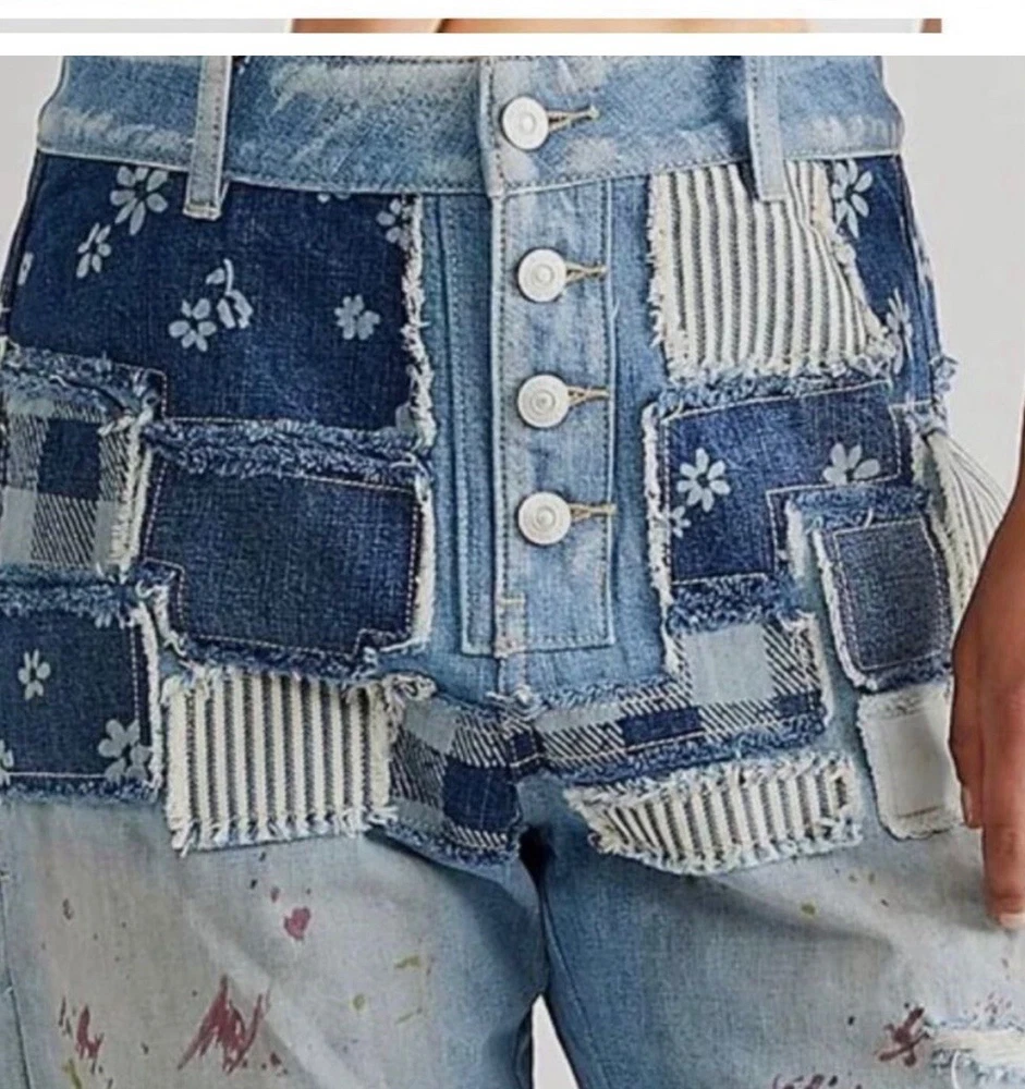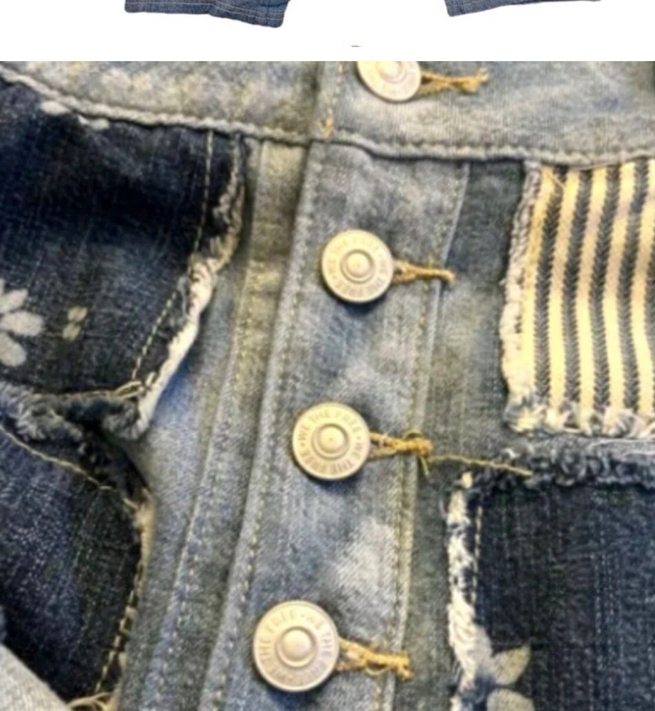Free people x We The Free Azalea Daisy Patchwork Blue size 28 NWT Perfectly distressed and patchwork-inspired, these need-now jeans are featured in a high-rise, straight silhouette with mixed print patches, raised seaming, and paint-splatter detailing throughout for added dimension. Exposed button fly Flat front and back Belt loops at waist Rigid denim fabrication We The Free Heritage inspired and lived-in staples. We The Free is an in-house label. Care/Import Machine Wash Cold Import Measurements in lying flat Rise 13” Waist 30” Inseam 27 New with tag. Never worn.