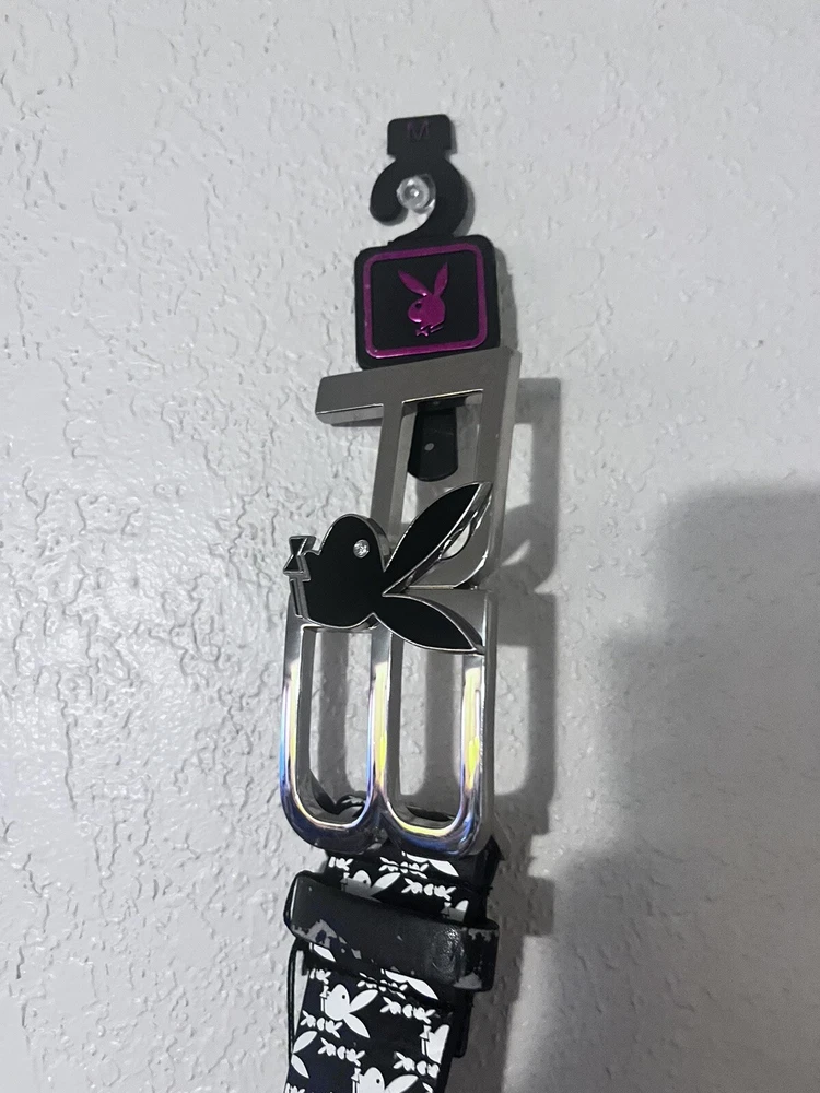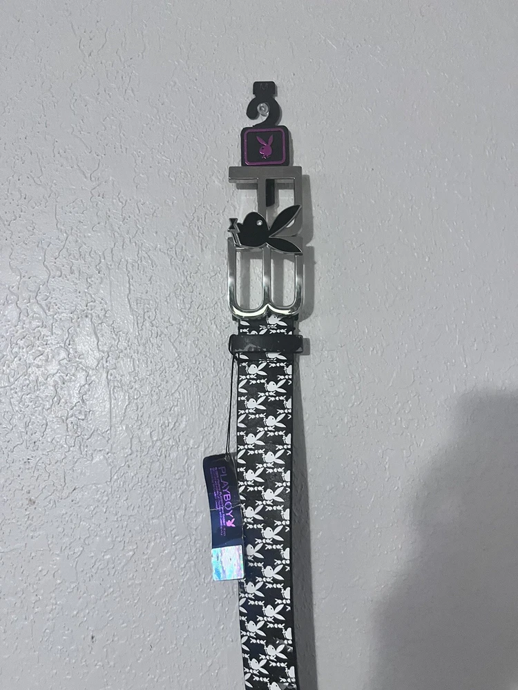 NWT Playboy belt and. Buckle black and white bunny design PB buckle size Medium Elevate your wardrobe with this NWT Playboy belt and buckle, featuring a stylish black and white bunny design. The medium-sized belt is perfect for any occasion and complements any outfit. The vintage-inspired buckle adds a touch of designer flair to this must-have accessory. Crafted with high-quality materials, this belt is durable and built to last. The Playboy brand is known for its iconic bunny logo, making this belt a statement piece that will make you stand out from the crowd. Add this belt to your collection today and make a bold fashion statement that will turn heads.
