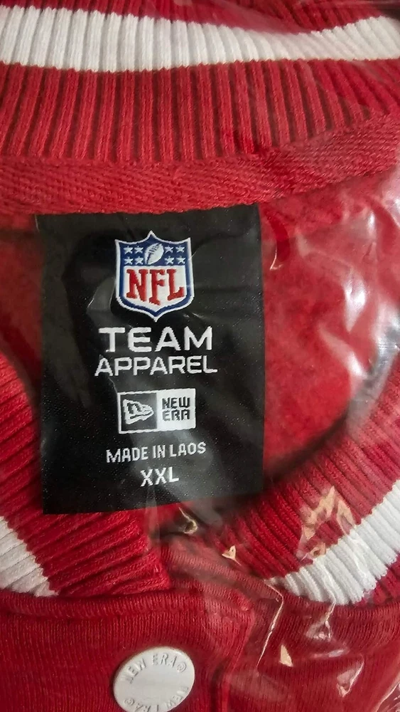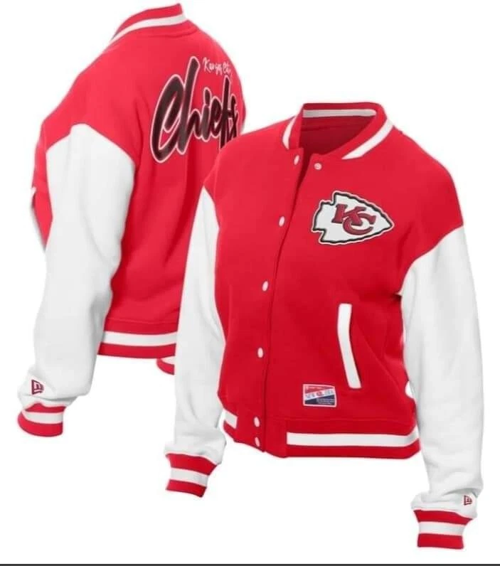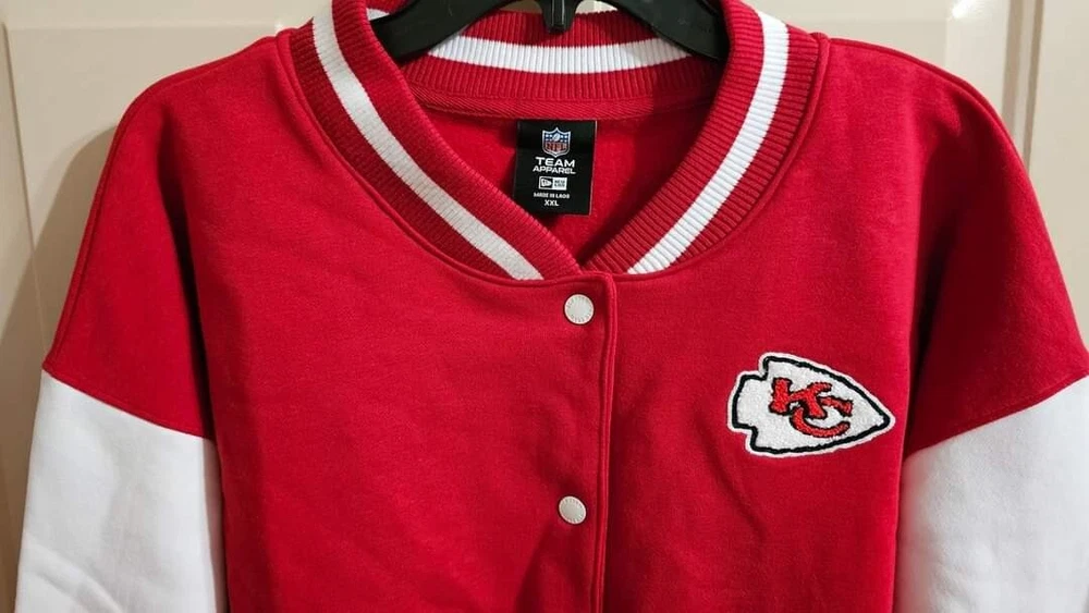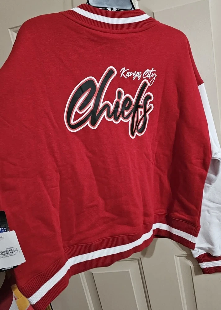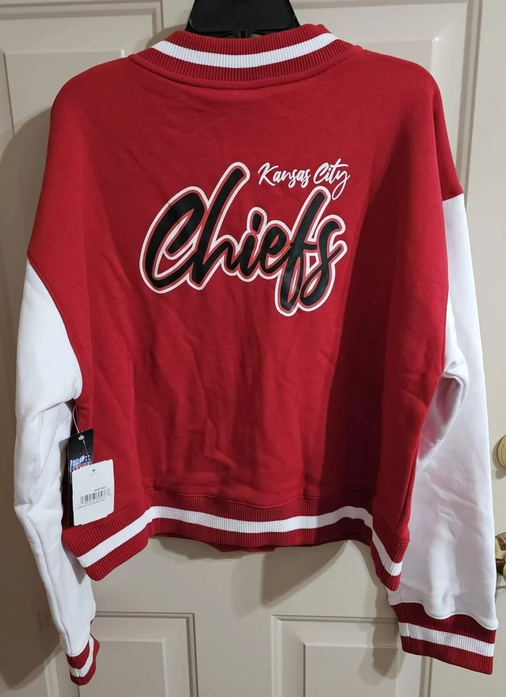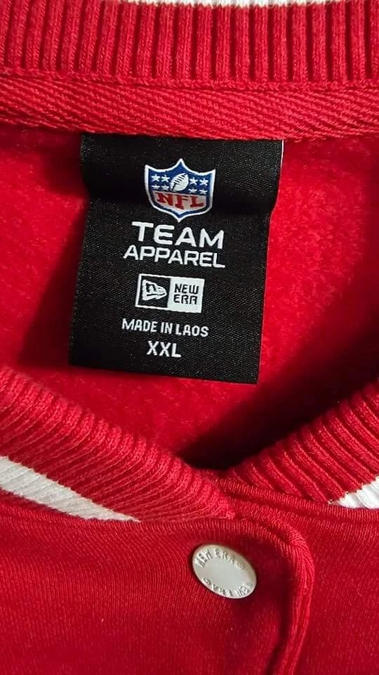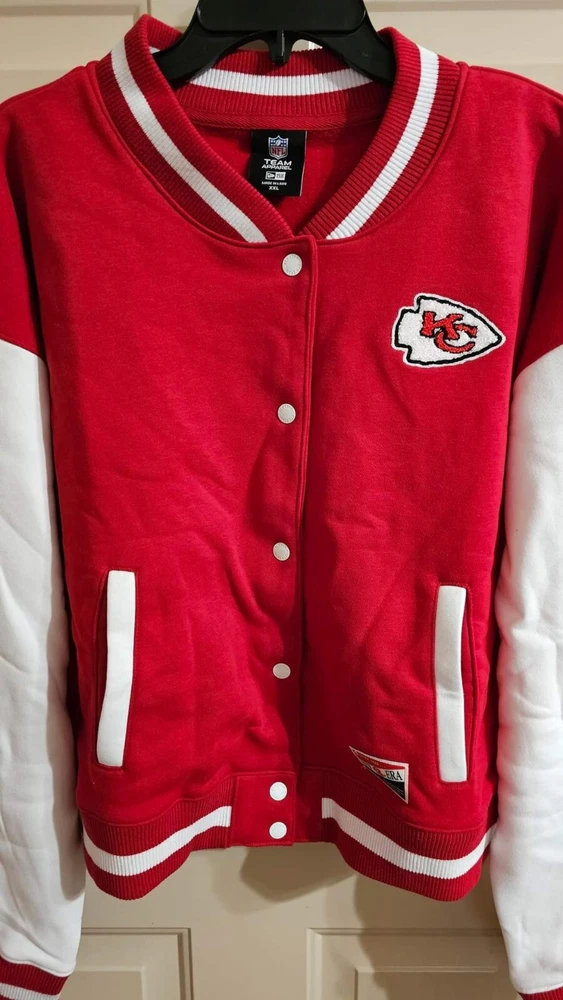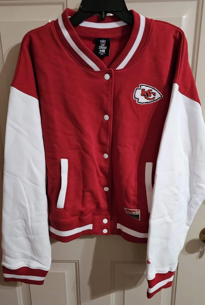 New w/tags Plus-size 2X Kansas City Chiefs New Era Women's Fleece Full-Snap Jacket - Red, *Stay warm while repping your Kansas City Chiefs with this New Era Fleece Full-Snap Jacket. This Chiefs Plus-size 2X jacket boasts a classic bomber look with a blade collar and rib-knit accents, keeping you warm and stylish. The embroidered team logo on the chest and cursive script across the back make it clear who you're rooting for on game day. • Brand: New Era • Blade collar for a classic bomber look • Two front pockets for stashing items • Rib-knit collar, cuffs and hem for extra protection from the cold • Midweight jacket suitable for moderate temperatures • Team logo at upper left chest is a chenille applique patch • Screen printed team name in cursive script across back • Woven embroidered jock tag at the left hip • Material: 60% Cotton/40% Polyester • Long sleeve • Machine wash, tumble dry low • Full Snap • Officially licensed • Fashionable style: Body of the jacket is shorter than the arms, • GREAT GIFT!! • Women's Plus-size 2X, *Officially licensed NFL Team Apparel *From Fanatics From arm pit to arm pit it measures 25 inches across, *From the top of the shoulder to the bottom it is 23.5 inches long *From the bottom of the arm pit to the bottom of the jacket is measures almost 11 inches in length ***Offering Local Pickup on this item in addition to regular shipping options*** ***DISCLAIMER: *PLEASE VIEW ALL PHOTOS & READ FULL DESCRIPTION *I inspect each item myself & try to list any & all defects that I see. *All measurements are approximate. *True color may vary from screen to screen & light to light. *Please feel free to ask any questions before bidding. *Items come from a Smoke-Free home. *Shipping available within the Continental United States. ***Possible discounted shipping available if multiple items are purchased within a reasonable time of each other*** *If you are not satisfied with any aspect of your purchase, Please contact me before leaving negative or neutral feedback. I want you to be happy with your purchase!! *THANKS FOR LOOKING!!!
