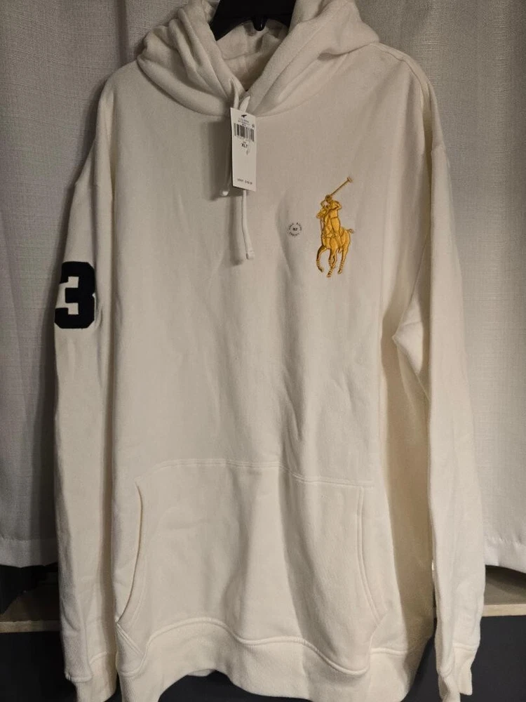 Polo Ralph Lauren Big Pony Pullover Hoodie Sweatshirt White Gold NWT SIZE XLT FREE SHIPPING
