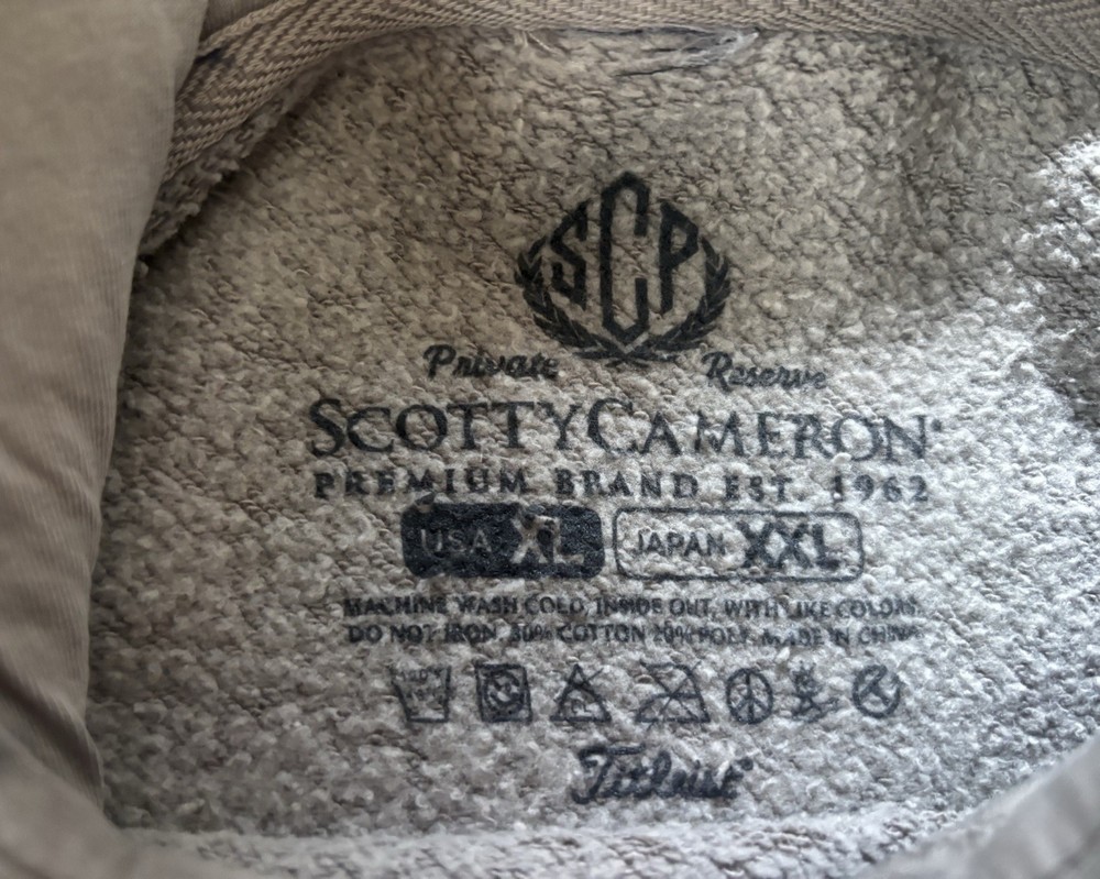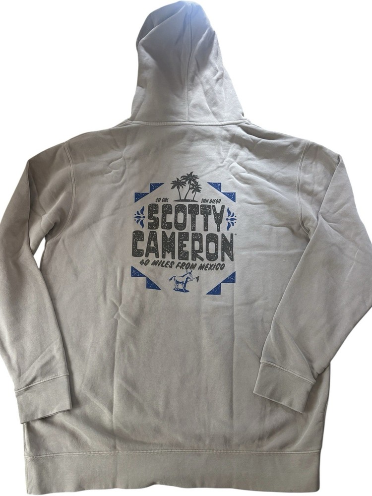 Brand New w Tags SCOTTY CAMERON GALLERY Donkey Hoodie Sweatshirt Size XL Cement Scotty Donkey on front 40 Miles From Mexico on back Made of thick Cotton Fleece S upreme softness and comfort, making it an ideal choice ! Just released from Scotty CameronGallery in ENcinitas Ca 100 % AUTHENTIC