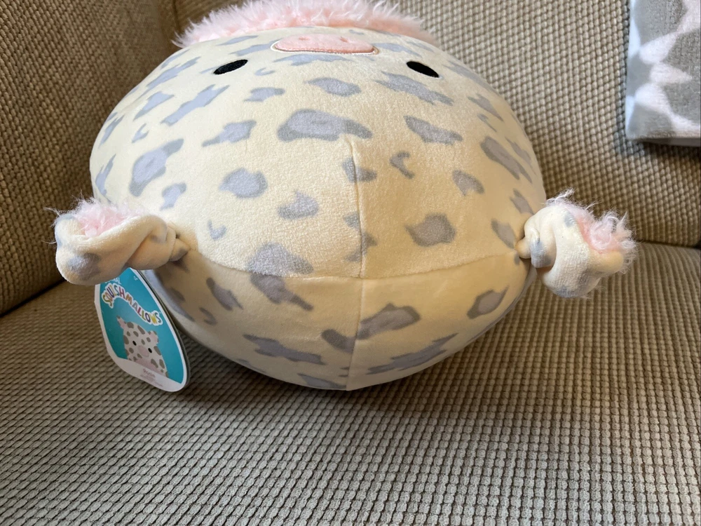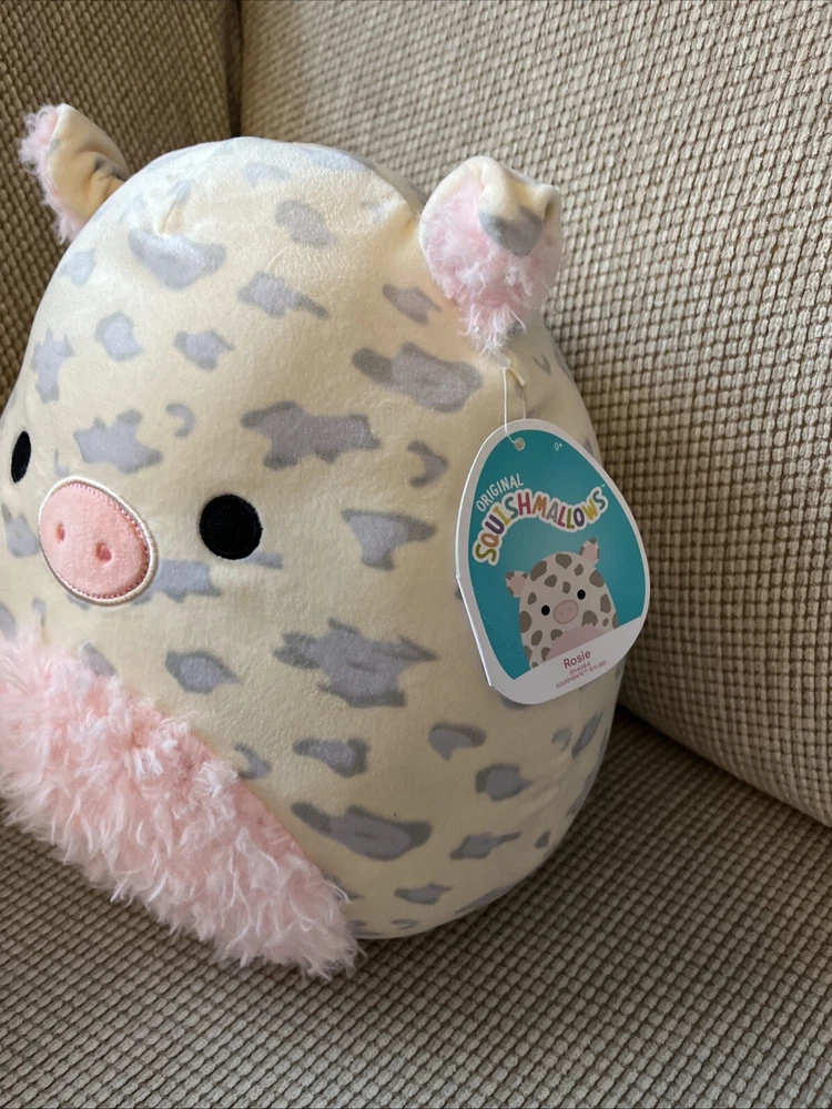 Meet Rosie, the adorable spotted pig from Kellytoy's Squishmallows collection. This small plush toy measures 12 inches of fuzzy belly goodness, perfect for snuggling up with during any occasion. Its washable features make it easy to keep clean and maintain. This Rosie plush toy is a must-have for any collector or fan of Squishmallows. Its recommended age range of 3+ years ensures that it's safe for children to play with. Get your hands on this hard-to-find pig character family member today!