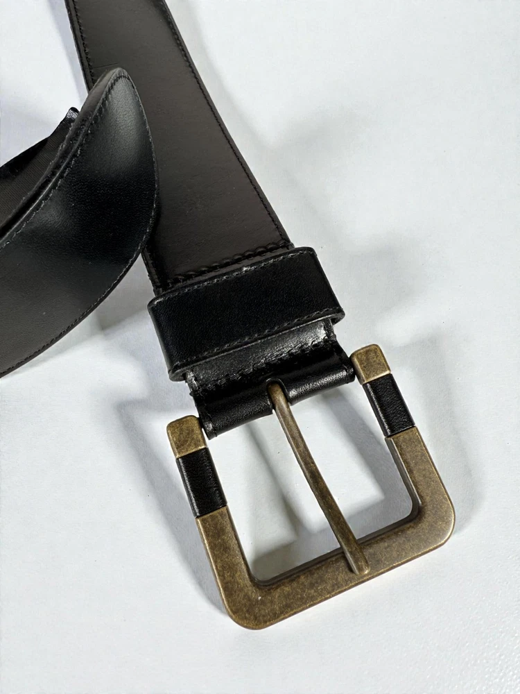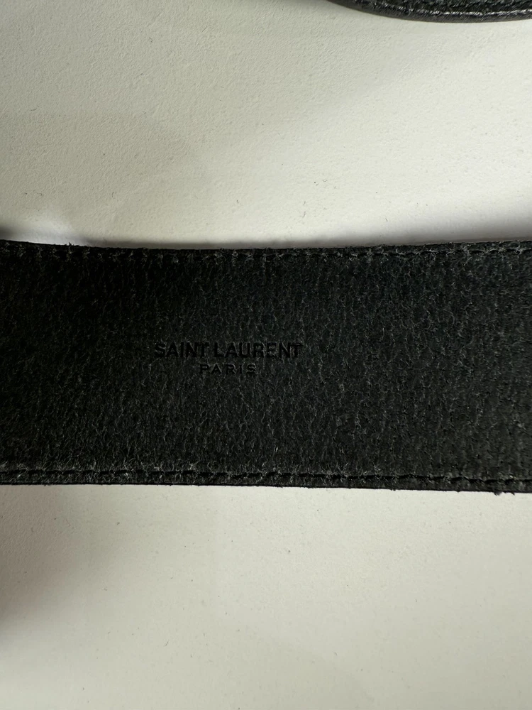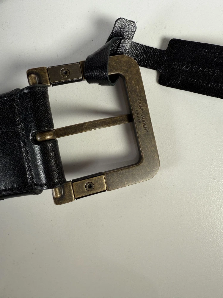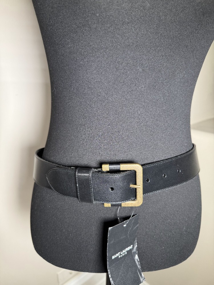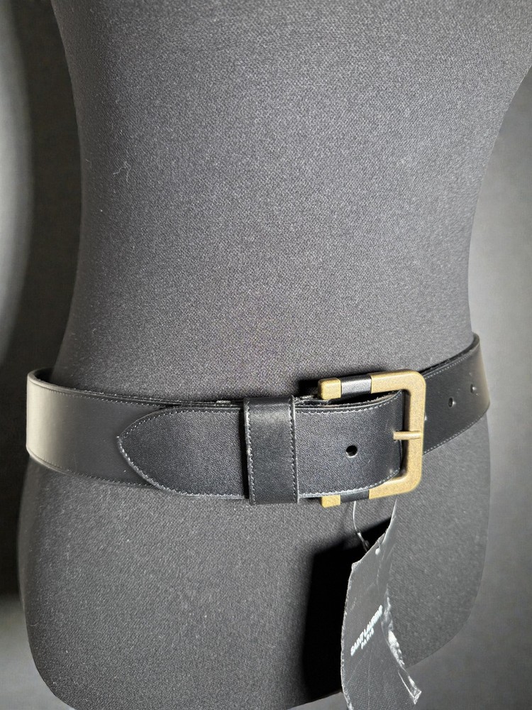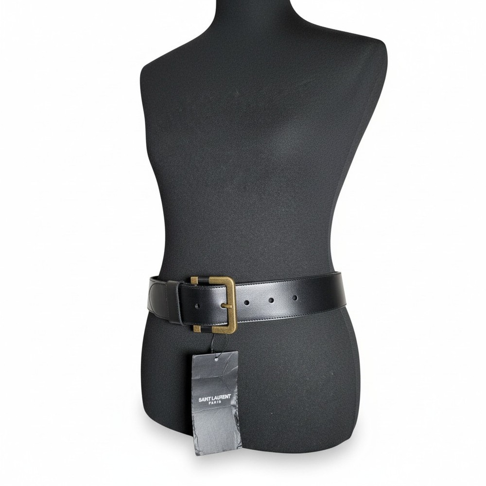 Authentic Saint Laurent Paris belt , Made in Italy and styled with antique brass buckle with a black leather inlay. Brand : Saint Laurent Paris Size : 80 CM (US 30) Color : Black Hardware : Antique brass buckle with black leather accents Model Code : 736639 AAB09 Material : Plant-based tanned leather Condition : Brand new with original tag and Saint Laurent dust bag Retail Price : $525 USD Made in Italy