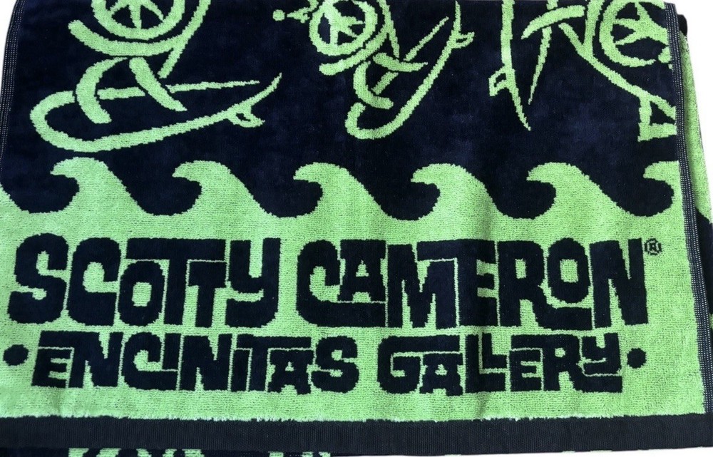 Brand New w Tags SCOTTY CAMERON GALLERY Dawn Patrol Peace Surfer Golf Player Towel Navy & Green Just released from Scotty Cameron Gallery in Encinitas CA 100% AUTHENTIC