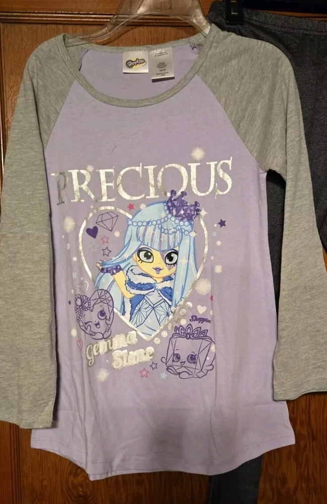 NWT Shopkins Pajamas Girls Size 10-12 LG Shirt Pants Set Purple Gemma Stone