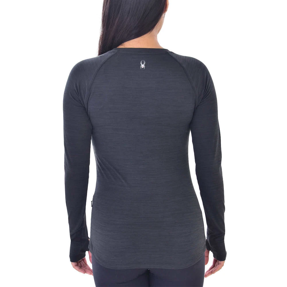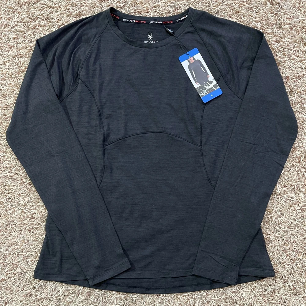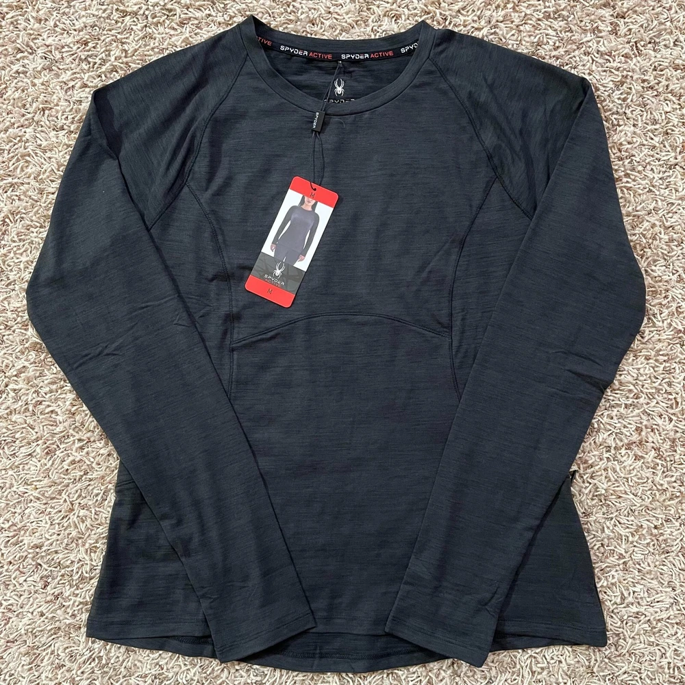 NWT Spyder Women’s Long Sleeve Brushed Soft Active Top Shirt Black, Size M Brand new with tags Size: Medium Armpit to armpit: 18.5" Back length: 24" Soft hand feel Wicks moisture Silver reflective logo Thumb holes Left side zipper pocket 88% Polyester, 12% Spandex