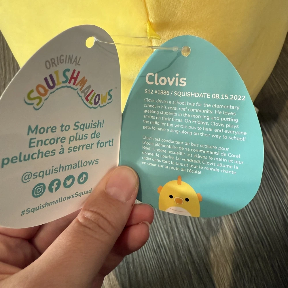 New with tags Squishmallows CLOVIS Seahorse #1886 Does have one small marker mark at the top, see the second photo for more details Fast and secure shipping daily