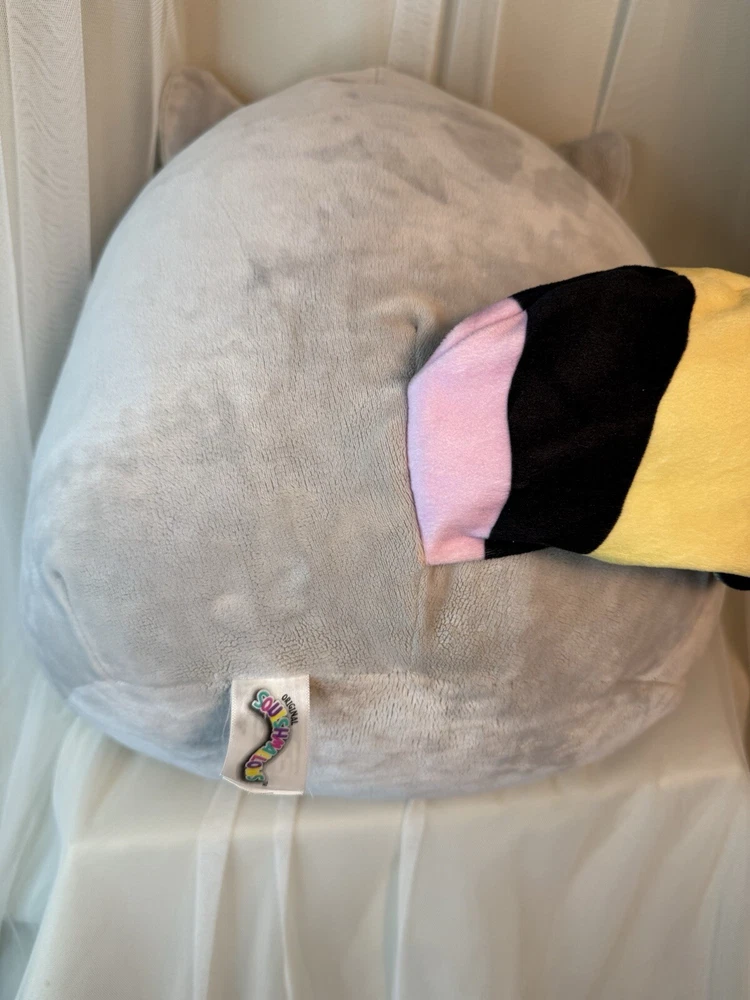 This Squishmallow plush toy features Max the Raccoon, a medium-sized stuffed animal with a gray body and colorful rainbow belly and ears. Made by Kellytoy, this plush is perfect for any occasion and suitable for children aged 3 and up. Max the Raccoon is washable and part of the Squishmallows character family. With its soft and squishy texture, this plush is perfect for snuggling and cuddling. It's recommended for children aged 8-11 years, 4-7 years, 3-4 years, 17 years & up, and 12-16 years. Add this adorable raccoon to your collection today!
